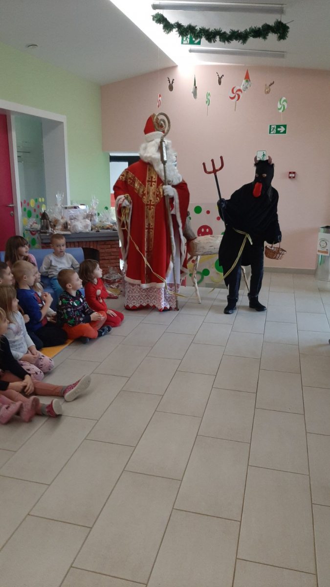 Sveti Nikola niti ove godine nije zaobišao naš vrtić, gdje je donio prigodne slatke pakete, a zauzvrat od djece je dobio dobru već poznatu pjesmu. Ove godine društvo Svetom Nikoli pravio je vrckasti i zaigran veseli Krampus, koji nije bio zločest i nije dijelio djeci šibe već bombone!