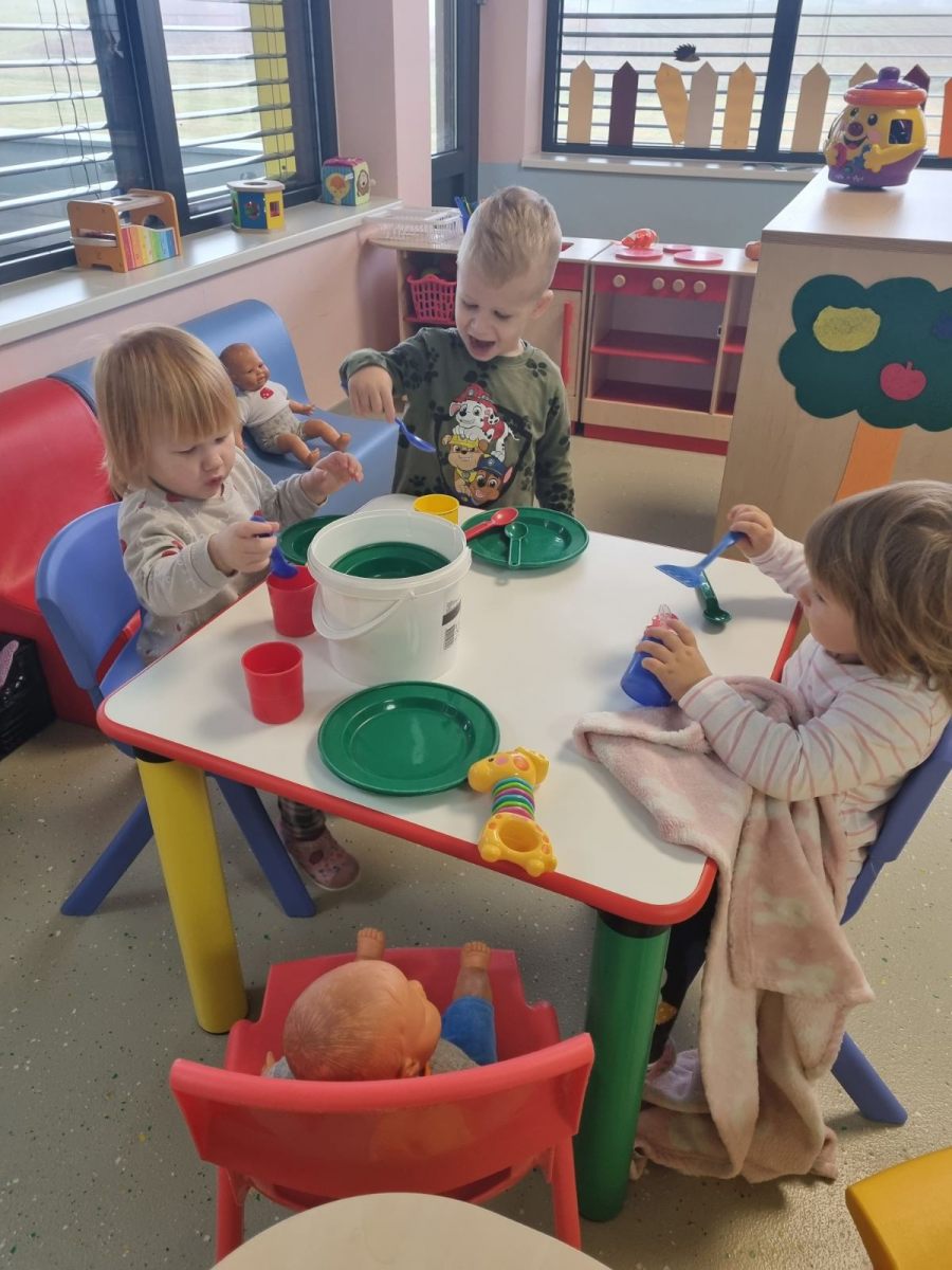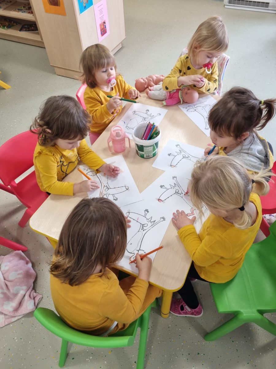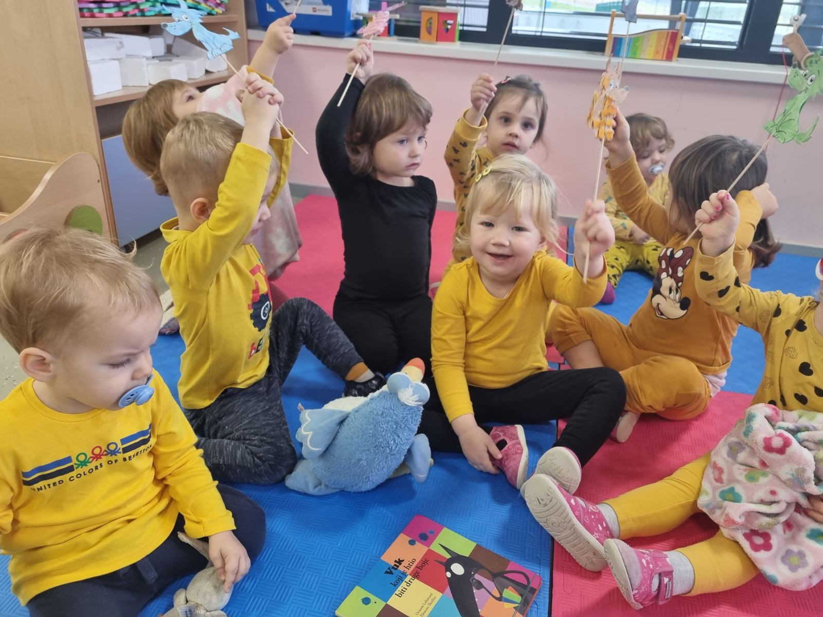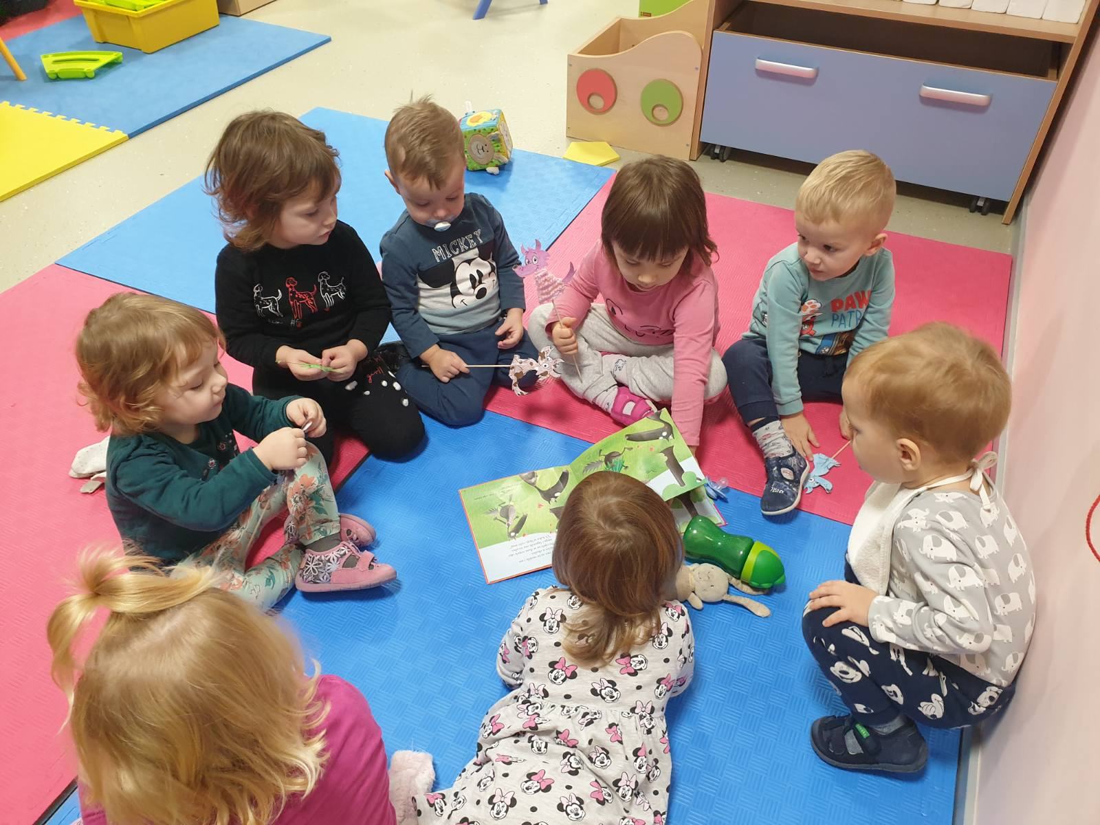 Tako smo i mi Sovice ovaj mjesec krenuli sa bajkama, a prva nam je bila Zlatokosa i tri medvjeda. Osim pričanja priče, slikovnicu smo razgledavali te pokušali uočiti razliku između medvjeda, tanjura, stolice… likovno smo se izražavali radeći, oslikavajući medvjede. Klasificirali smo predmete po boji i veličini. A da priču samo ne pričamo koristili smo štapne lutke koje su pojačale intenzitet priče.
