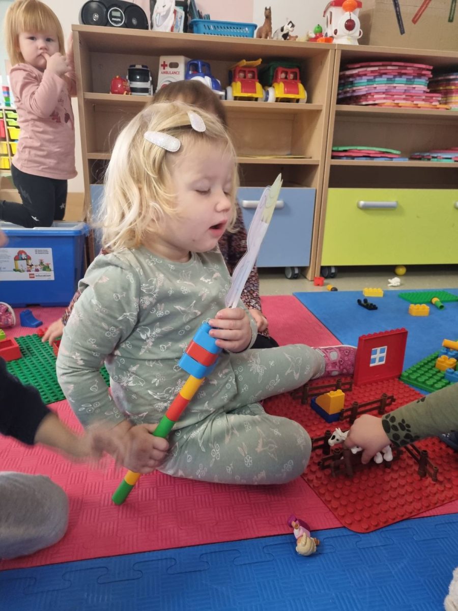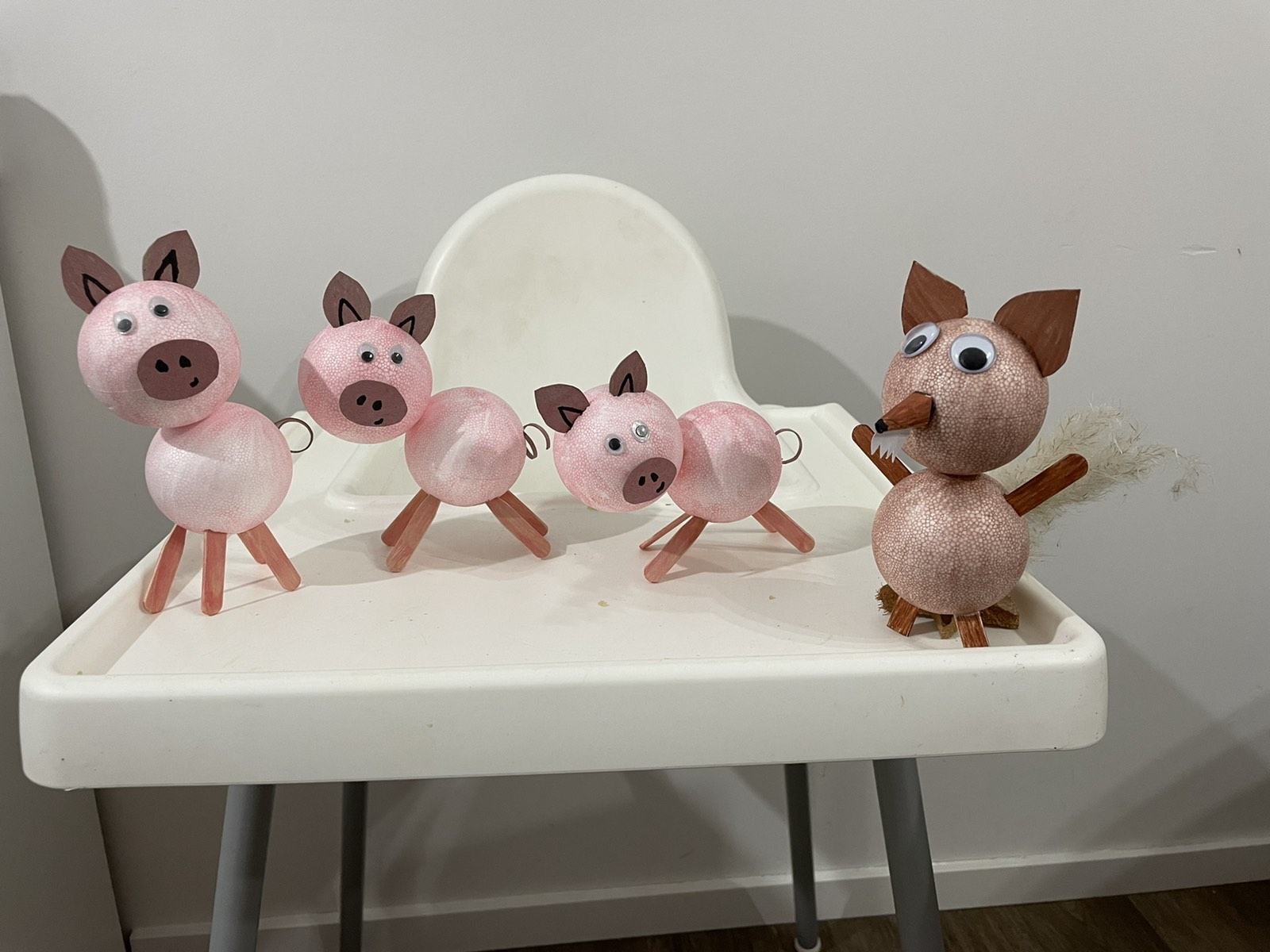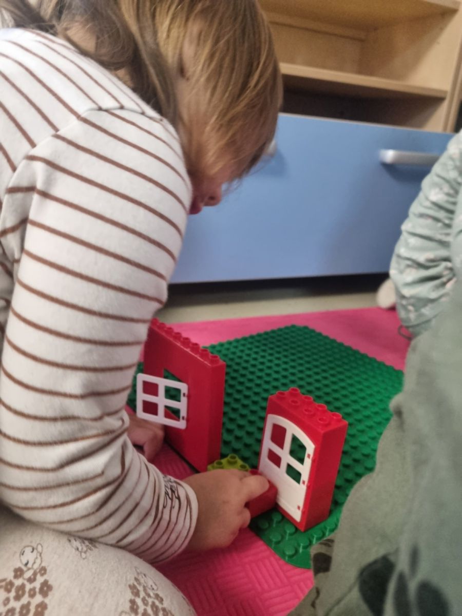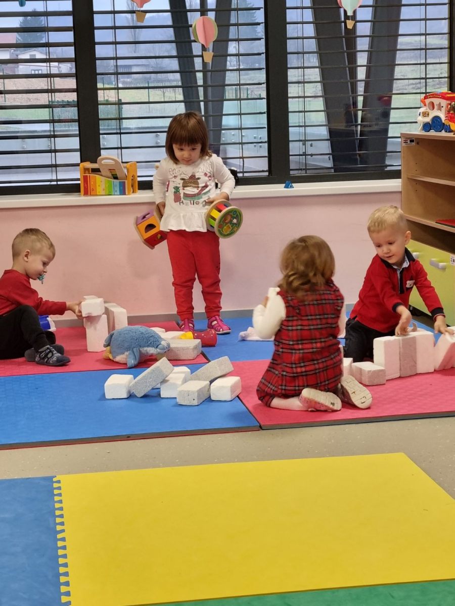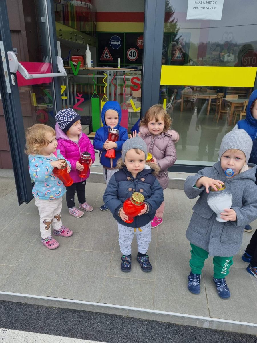 Našem ovogodišnjem projektu „Boje i oblici“ približila nas je priča o Tri praščića. Plošne lutke kao i slikovnica privukle su djecu na pažnju slušanja a stariji su se i sami okušali u pričanju uz pomoć lutkica. U centru gradnje gradili smo kućice za naše praščiće, a da li su dovoljno čvrste testirali smo ih puhanjem kao vuk. Priča nam je osim toga omogućila likovne aktivnosti te stolnomanipulativne (pridruživanje, klasifikacija).
