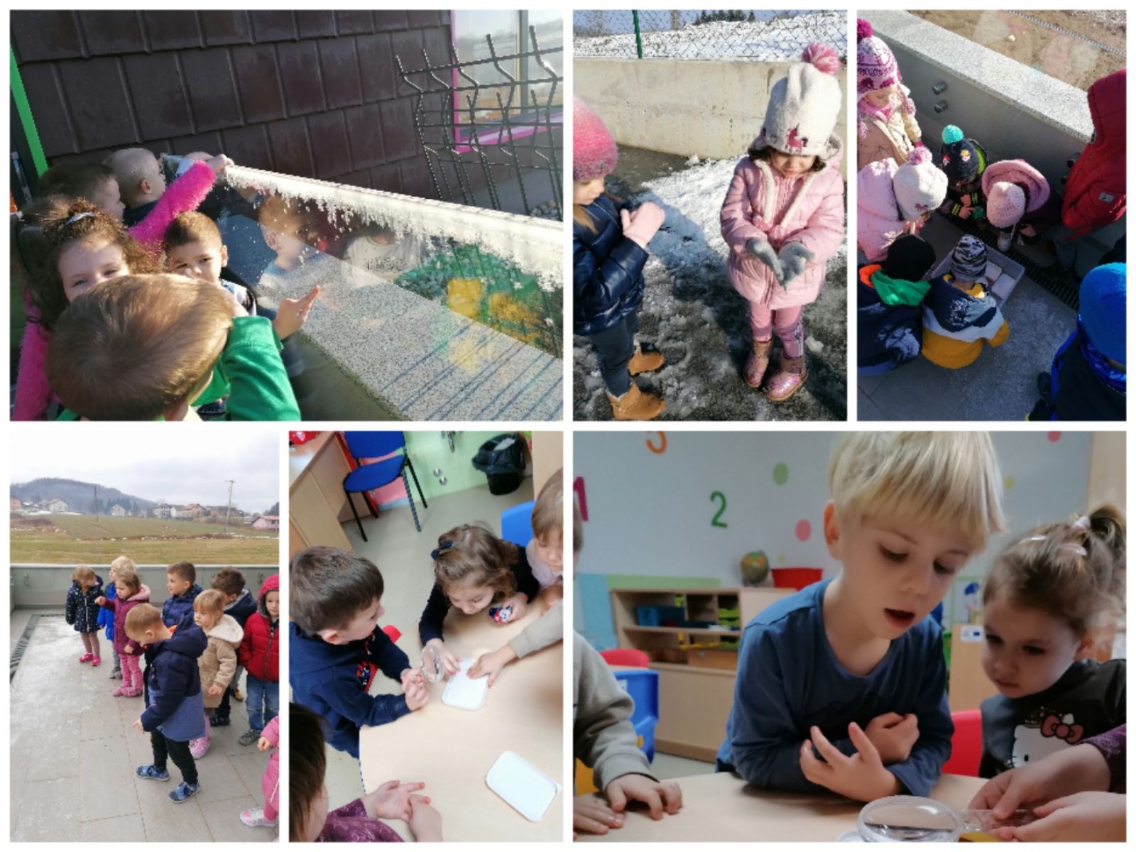 Staru godinu ispratili, a novu dočekali i u našem vrtiću uz druženje, pjesmu, ples i igru dok su djeca rado prepričavala svoje doživljaje o blještavom i glasnom vatrometu. Nakon novogodišnjih blagdana, pomalo smo se okupljali u sve većem broju te započeli s aktivnostima vezanim uz hladnu zimu. U tome su nam pomogle slikovne aplikacije vremenskih prilika, godišnjih doba, te zimskih aktivnosti i prikladne odjeće i obuće za upoznavanje osnovnih karakteristika godišnjeg doba – zima. Slikovnice “Mala krtice, otvori mi vrata”,“Tri snjegovića” i “Kako je snijeg pao” otkrile su nam kako činiti dobra djela, te smo na šaljiv način doznali kako snijeg pada. Prilikom boravka na zraku djeca su najviše imala prilike iskusiti svojim osjetilima pravi doživljaj zime. Imali smo igre u snijegu, proučavali i otkrili što je to mraz, promatrali led i što se sve s njime događa. A onda kada je snijeg nestao, donosili smo zaključke o tome kamo je otišao i što se onda dogodilo.