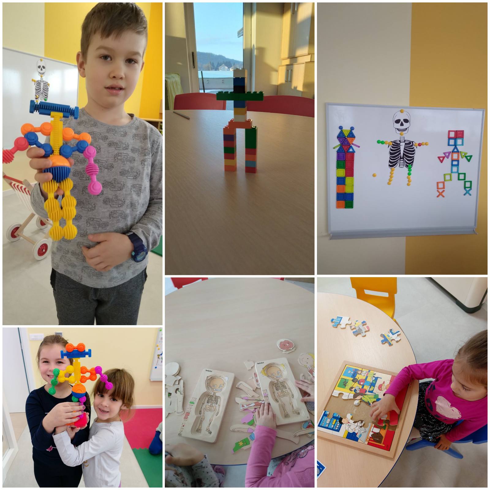 Slaganjem ljudskog tijela od magneta kao i ostalih raznolikih manipupativnih elemenata nastajali su maštoviti uradci. Na osnovi viđenog i pročitanog kao i dolaženjem do vlastitih spoznaja putem istraživačkih i stolno- manipulativnih igara, djeca su postupno shvaćala funkciju kostiju, mišića i organa.