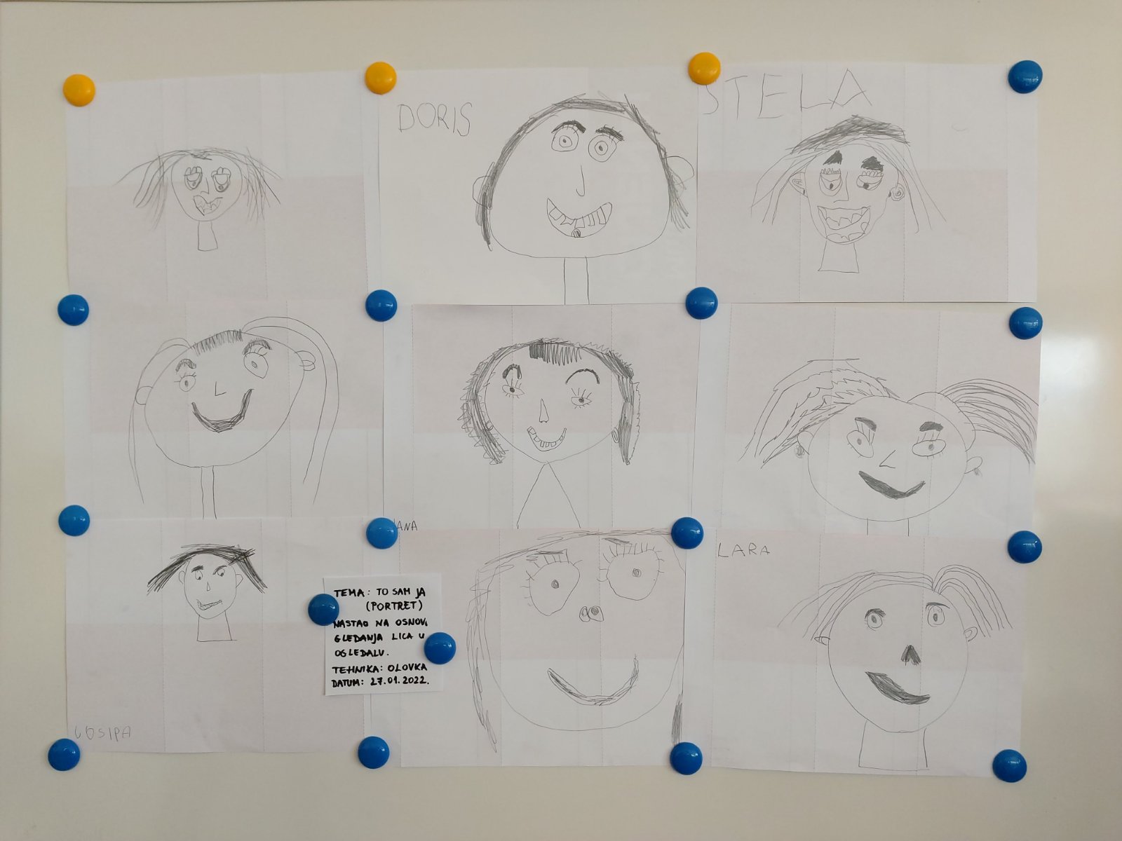 Da bi naš autoportret imao sve dijelove lica i detalje, svoj odraz gledali smo u ogledalu i proučavali što sve lice može. Baš smo se zabavili!