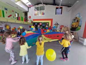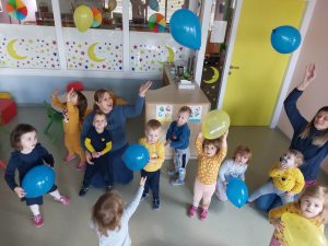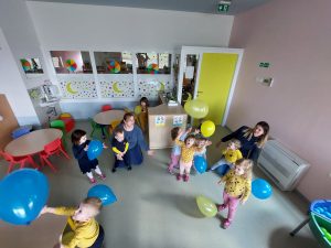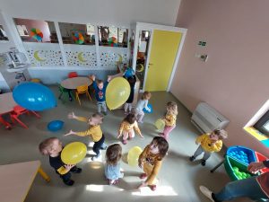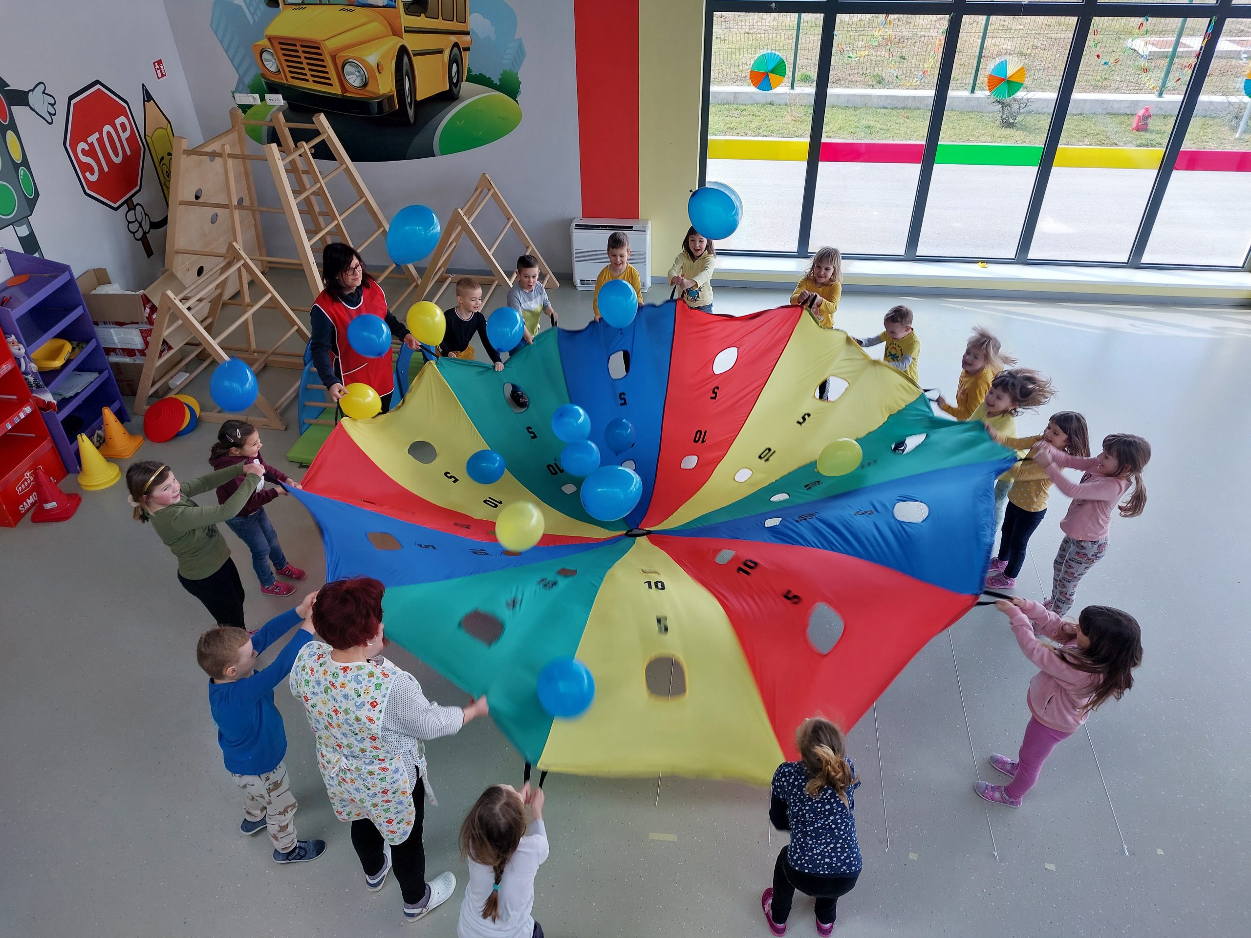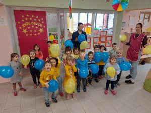 Roditelji su bili uključeni na način da su svojoj djeci mogli obući plave ili žute majice, ako su to željeli. Igrom žutim i plavim balonima željeli smo poslati poruku mira, odnosno pružiti podršku djeci za bezbrižnu igru i djetinjstvo.