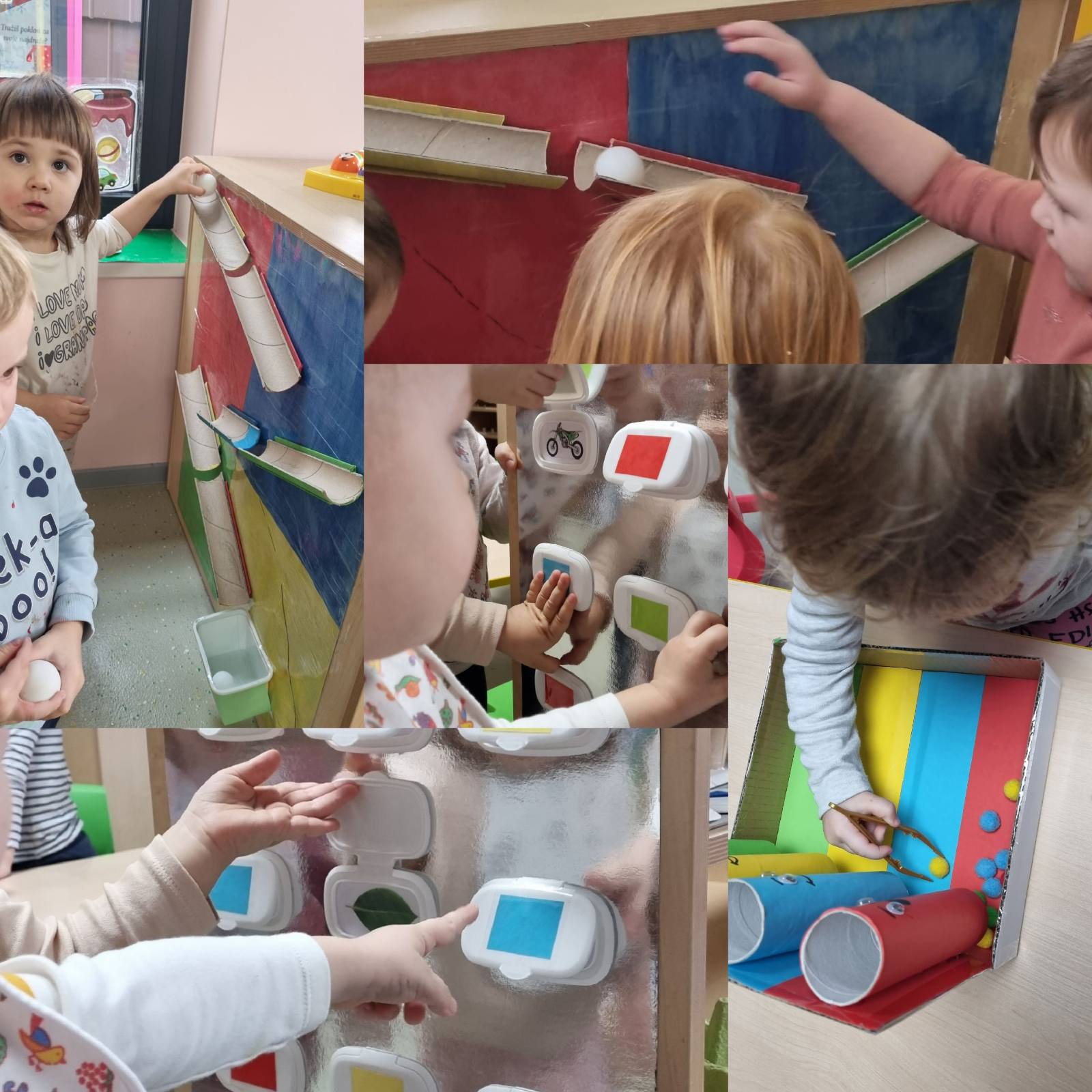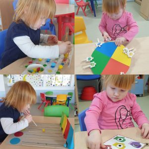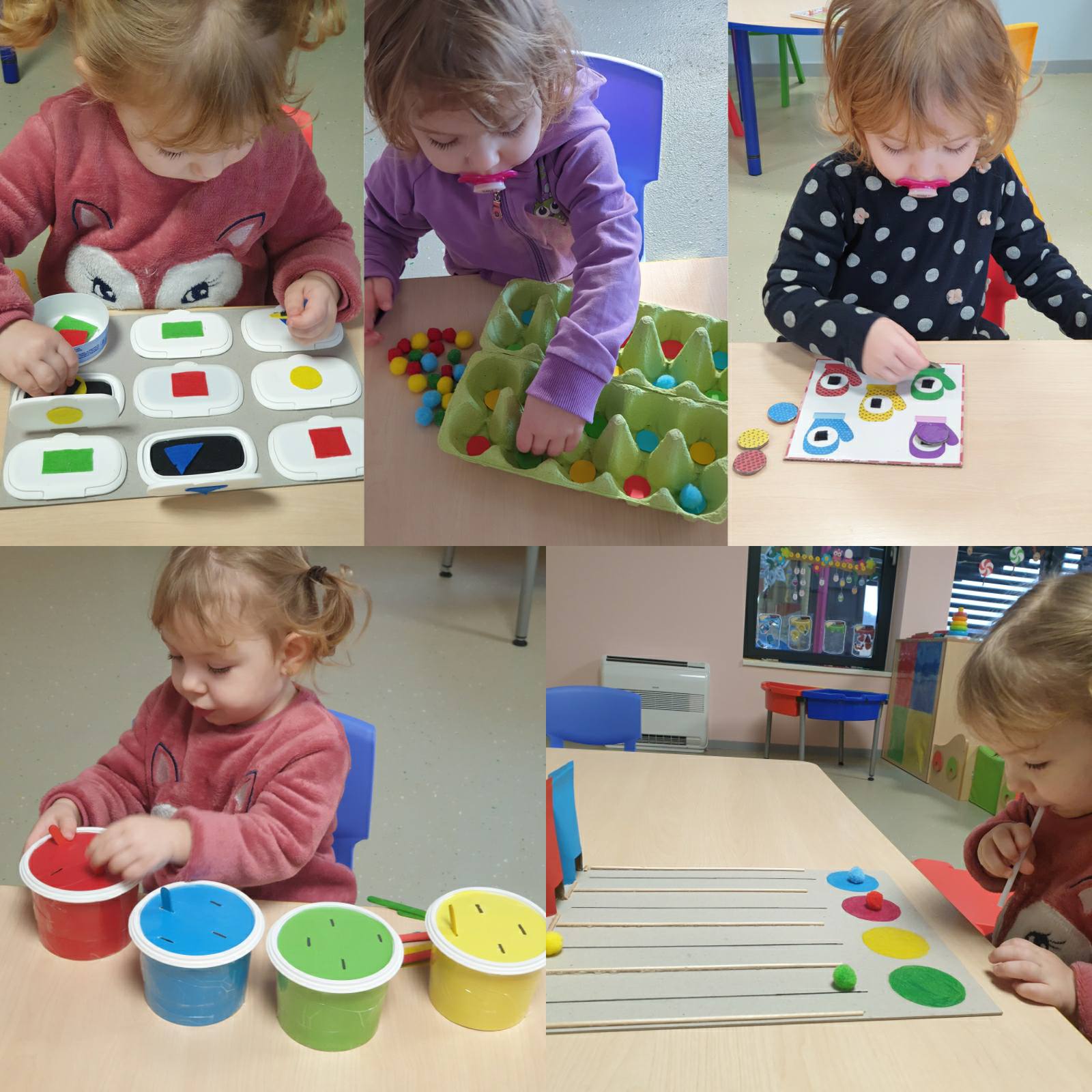 Uza sve događaje koji su nas pratili ovaj mjesec nismo zaboravili rad na našem projektu. Centar boja obogatili smo novim poticajima kojima su djeca kombinirala, manipulirala, pridruživala i istraživala kosine, boje i oblike. U sve tome veliku pomoć u usvajanju boja pružaju nam i prigodne slikovnice koje obrađuju tematiku boja i oblika kao što su „Učimo boje s Viktorom“, „Učimo oblike s Viktorom“, „Boje“ .