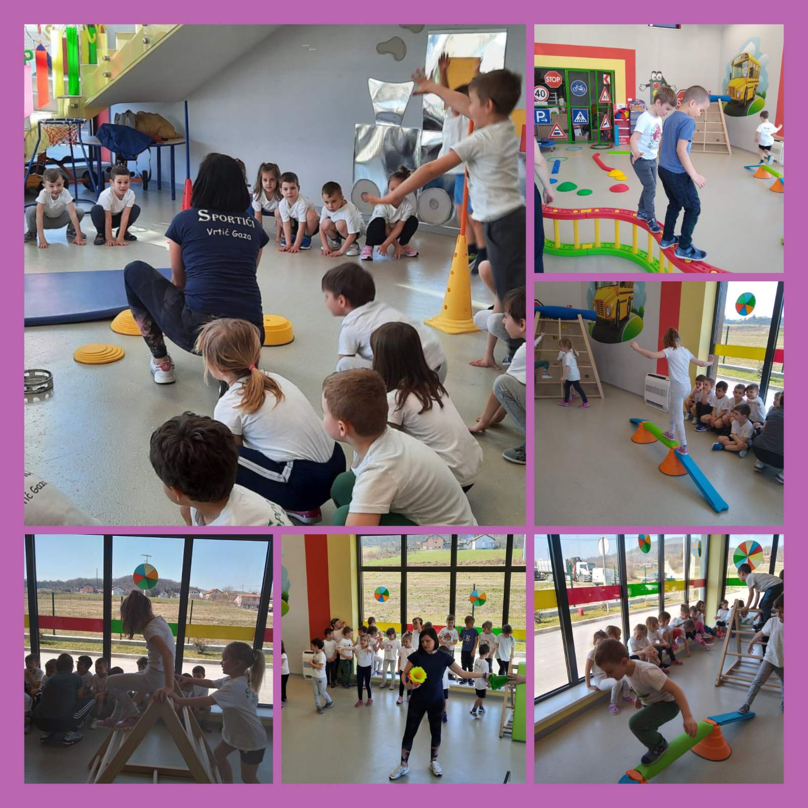 Zahvaljujemo se dolasku trenerice Maje, njezinim zanimljivim igrama i tjelesnom vježbanju, kao i odgojiteljima Vesni, Ireni, Valentini koje su dovele Sportiće do našeg vrtića.