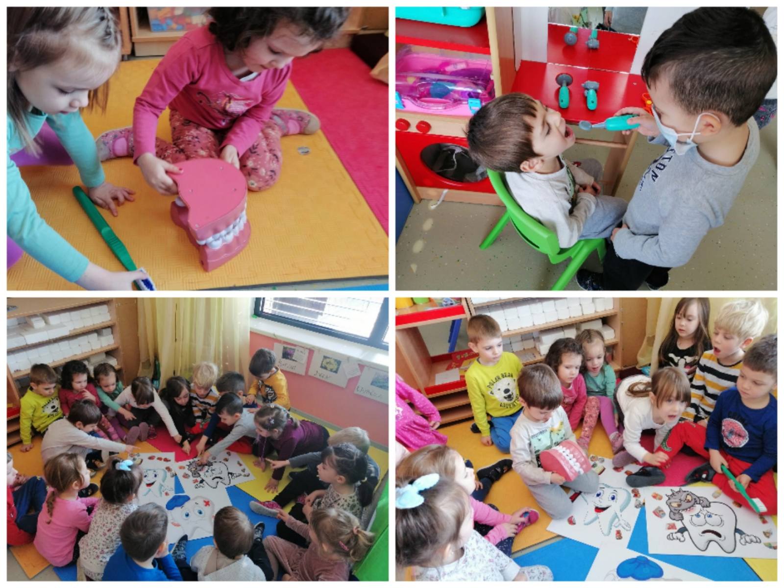 Voda ima važnu ulogu i u pranju naših zubića. Slikovnicom o Gricu i Grecu te simboličkom igrom s modelom zubala i četkicom, djeca su se igrala zubara i tjerali Grica i Greca što dalje od njihovih zubića.