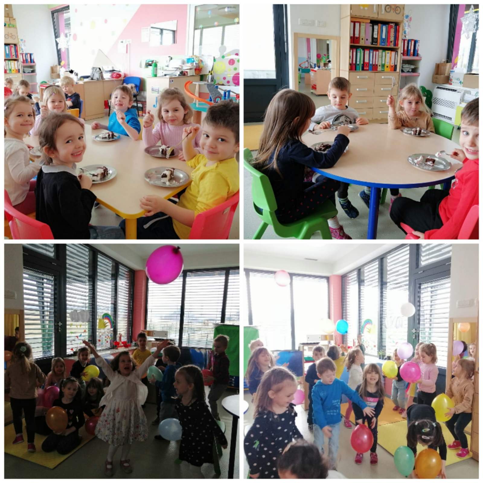 Imali smo i puno važnih datuma koje smo prigodno obilježili. Na prvi dan proljeća nosili smo različite čarapice i uz slikovnicu „Vedrina suncokreta“ razgovarali o različitostima povodom Svjetskog dana Down sindroma. Proslavili smo i jedan vrlo važan rođenadan, a to je bio 2. rođendan našeg vrtića. U proslavi su sudjelovali svi, napravila se zajednička čestitka, bilo je pjesme, plesa i slavljeničke torte. Još jedan poseban dan bio je Dan očeva, za koje smo zajedno pripremili, odgojiteljice i djeca, mali znak pažnje, te uz pjesmice i slikovnice posebnu pozornost dali jednoj od najvažnijih osoba u dječjem životu – tati. Šetnjom do obližnjeg potoka pokušali smo probuditi svijest o važnosti vode, kao i čistoći vode u čemu nam je koristio pokus pročišćavanja vode. Djeca su imala prilike pratiti proces od prljave do čiste vode. Uz mnoge komentare, preljevanja vode, ubacivanja prljavštine kao i vate, šljunka i kamenčića, djeca su na kraju uočila značajnu razliku između prljave i čiste vode.