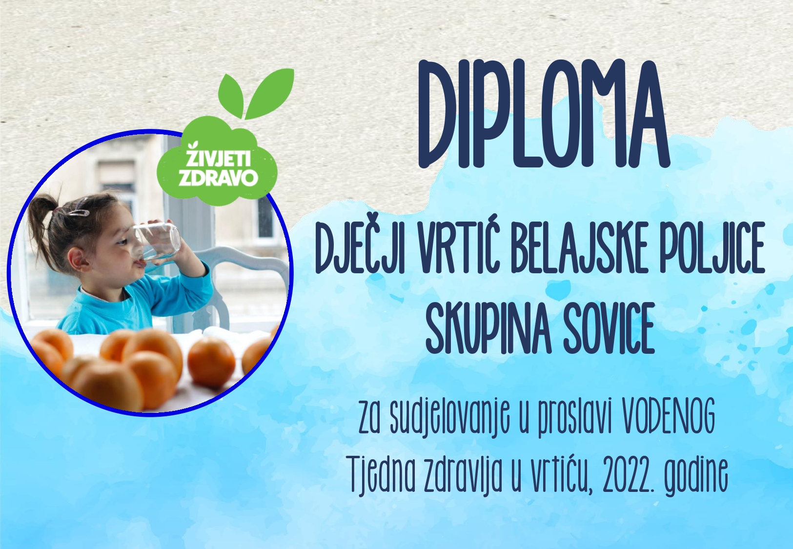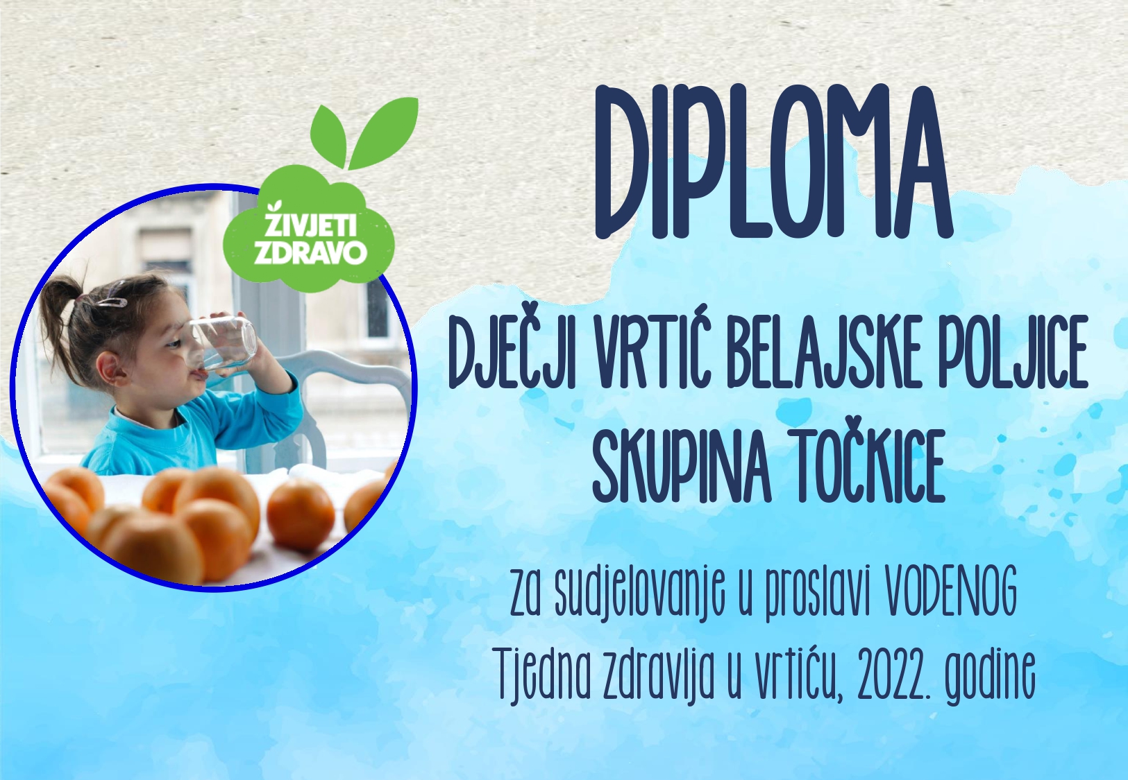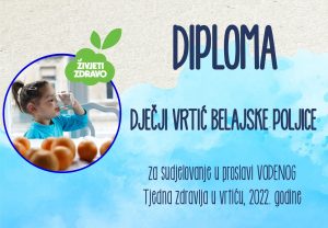 Dobili smo diplome za sudjelovanje u manifestaciji “Vodeni tjedan zdravlja”!