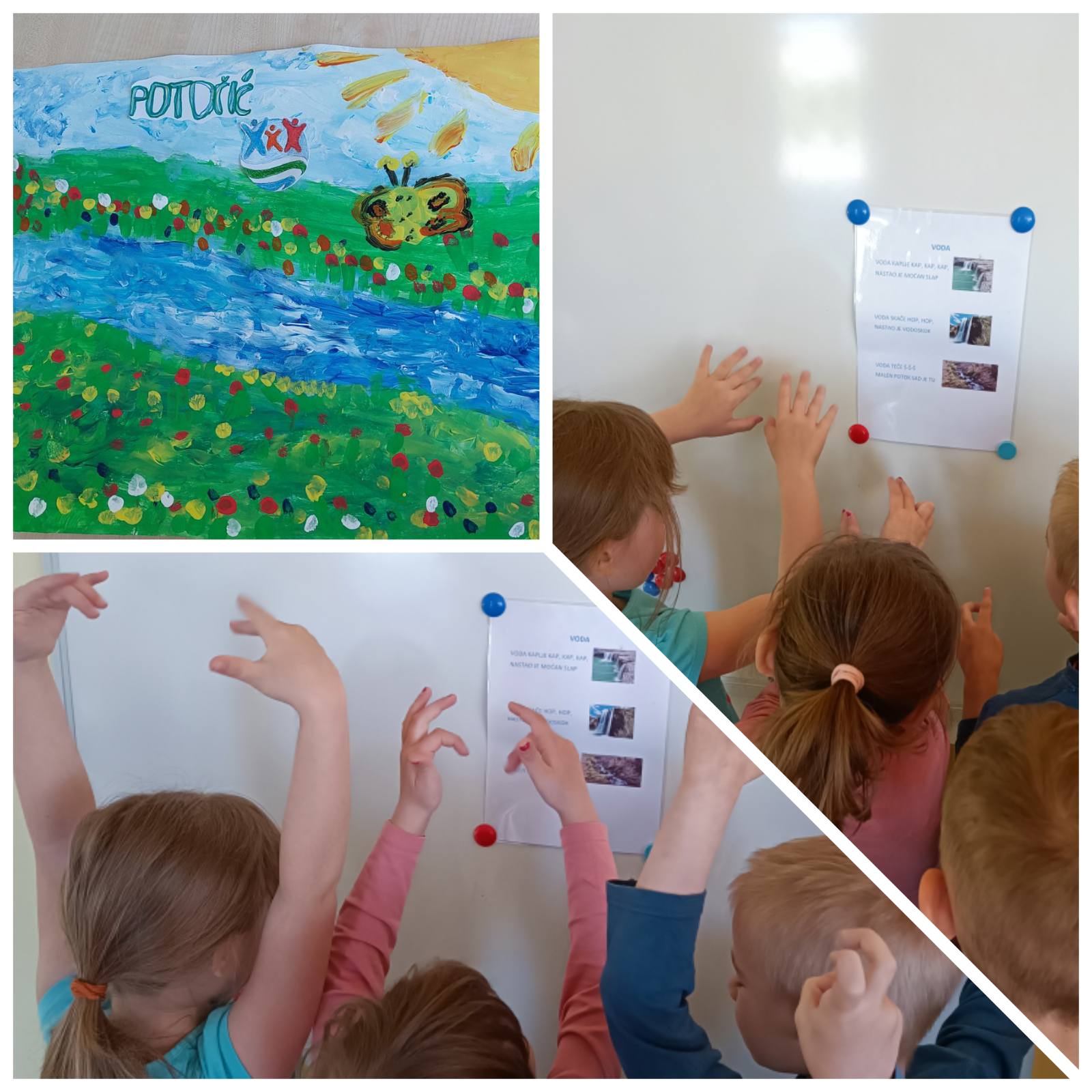 S djecom smo razgovarali o prisutnosti vode u prirodi i zašto je voda važna za ljude. Djeca zaključuju da bez vode nema života te da svaki živi organizam sadrži vodu.