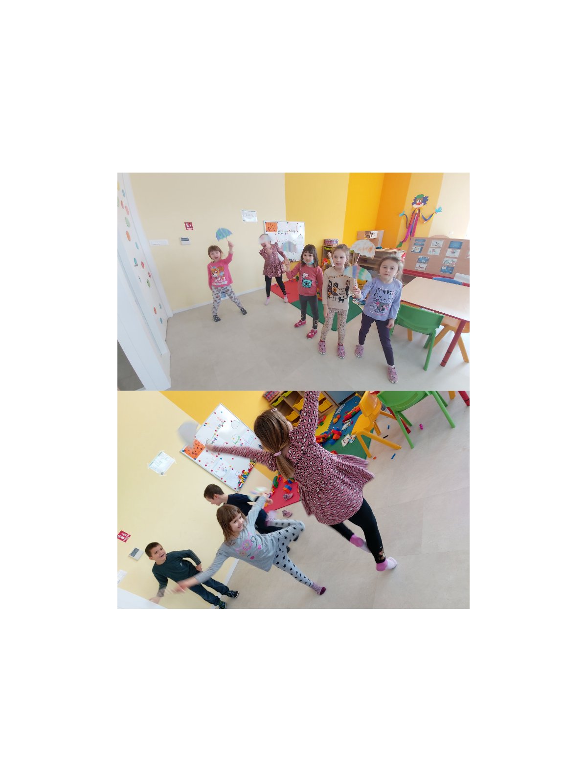 Djeca su se svakodnevno izražavala putem kreativnog pokreta uz glazbu s cijelim tijelom mijenjajući razine izvođenja pokreta. Za to nam je poslužila relaksirajuća glazba npr. Aquarium od Saint- Saensa.
