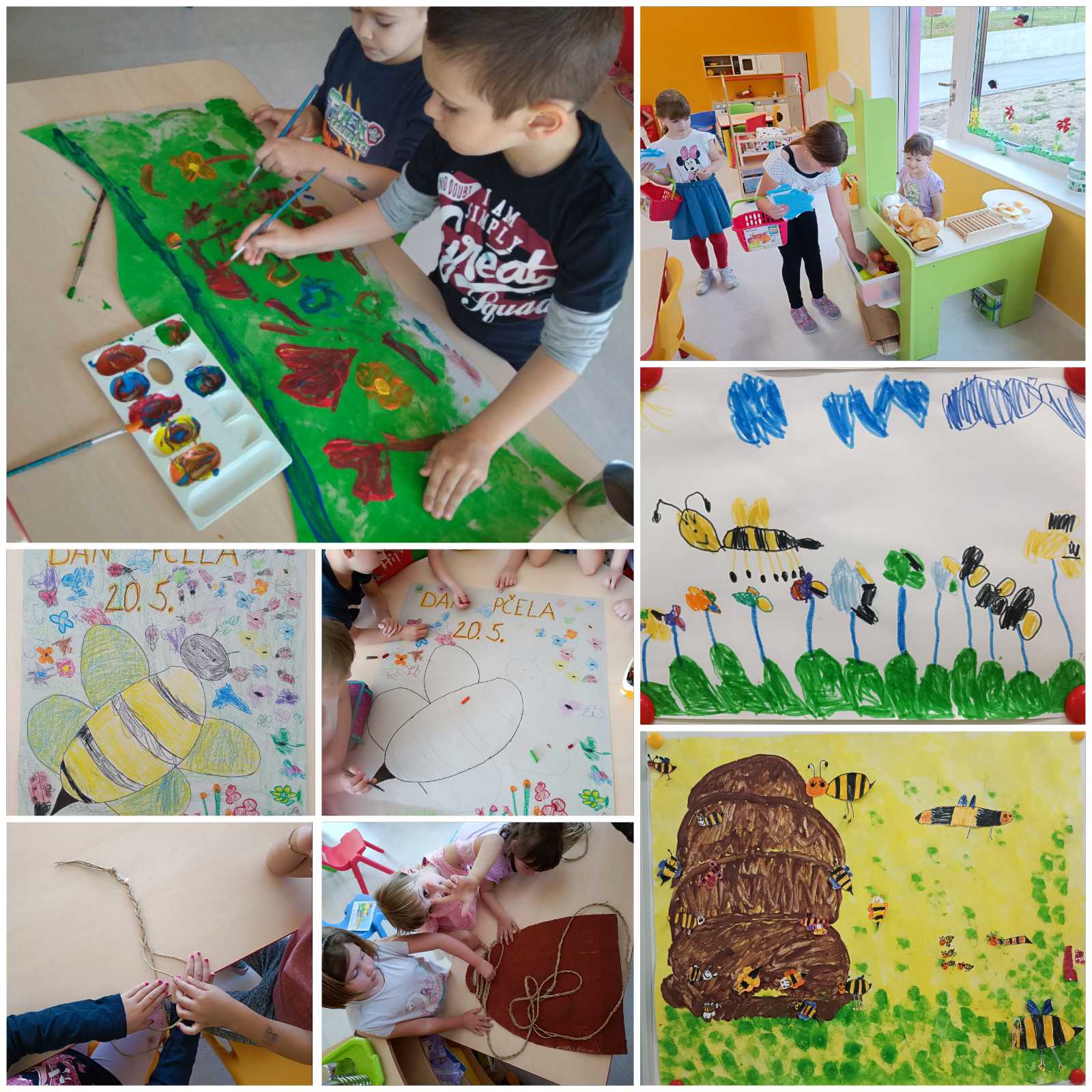 Osim što smo ponavljali pjesmice o pčeli kao što su: “Himna hrvatskoj pčeli, “Zum, zum, boc, boc” i “Bumbari i pčele”, slušali smo instrumental “Bumbarov let” kojeg smo puštali djeci kao glazbenu podlogu prilikom likovnih aktivnosti. Uz tu lijepu i živahnu skladbu, nastajala je livada prepuna cvijeća, leptira i pčela.