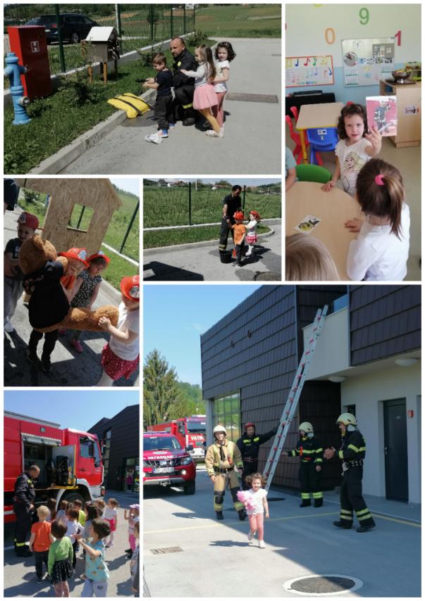 Bavilismo se i temom vatrogasaca, upoznali se s opremom koju koriste, broj koji zovemo u hitnim slučajevima, čuli neke nove riječi, te spoznali što se sve u našem vrtiću nalazi za gašenje požara. Nakon dobre pripreme, u posjet su nam stigli vatrogasci iz DVD Belajske Poljice koji su imali puno toga za pokazati. Stoga smo imali prilike sjesti u njihova vozila, isprobati kacige, povlačiti uže te sudjelovati u akciji spašavanja mede iz požarom zahvaćene kućice.