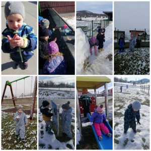 U mjesecu siječnju imali smo priliku i igrati se na snijegu: grudati se, raditi snjegovića te istraživati njegove karakteristike: mokar, hladan, bijel.