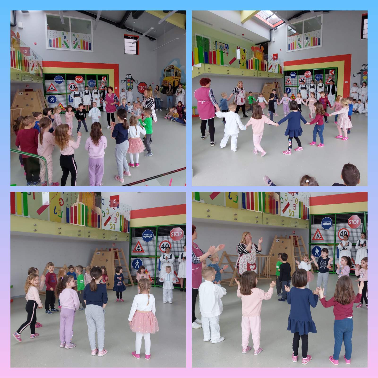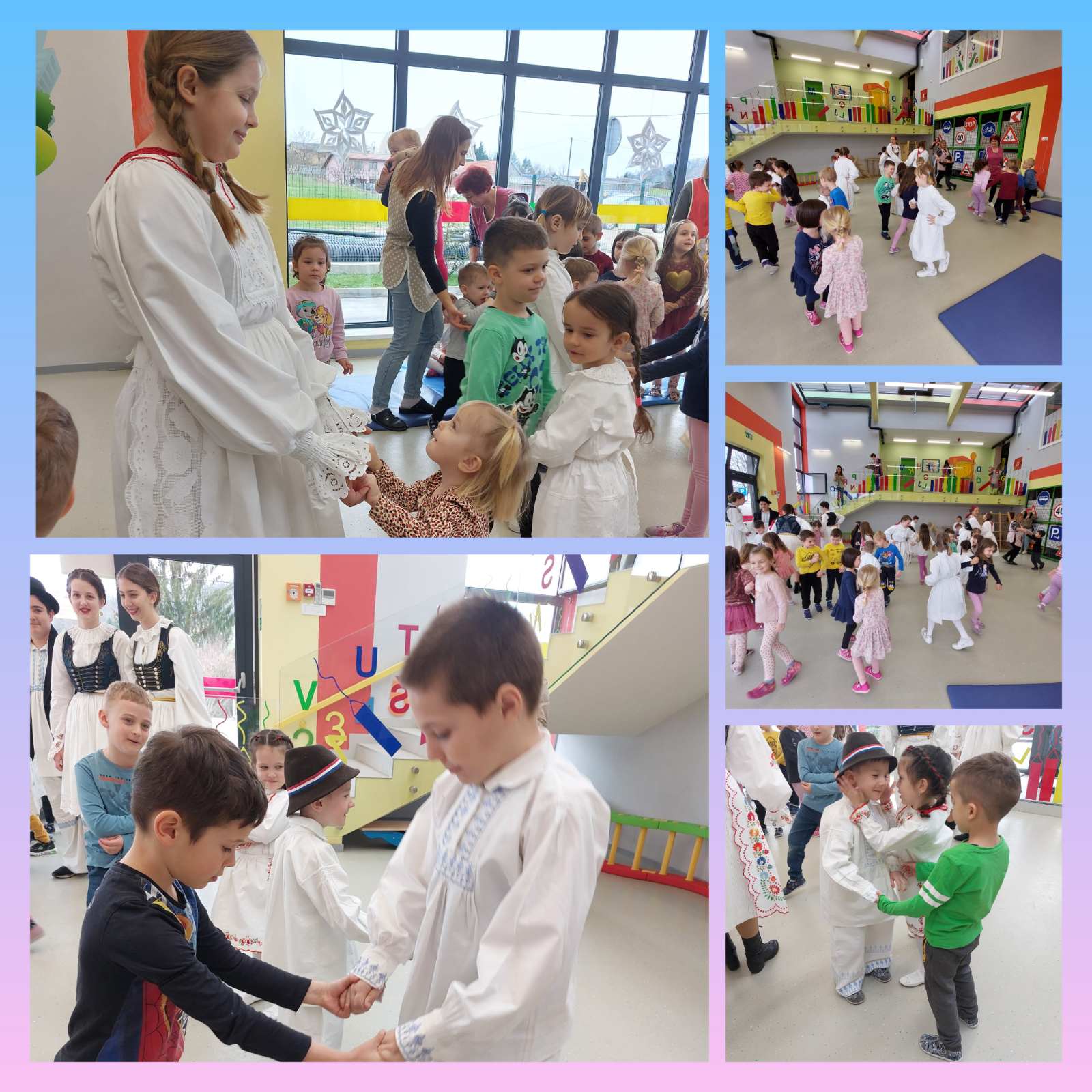 Prekrasnom nastupu KUD-ova i njihovim izvedbama, pridružila su se naša djeca skupine Perlice s odgojiteljicama, koja su također pokazala znanje u izvedbi tradicijskih igara i plesova koje provode kroz pedagoški rad, a po završetku nastupa svi prisutni mogli su se pridružiti članovima KUD-a Vinčica Belajske Poljice, u plesanju plesa u paru “RAŠPA”. Djeca su nagradila sve prisutne pljeskom, izmjenjivale su se zahvalnice kao i čestitke i prigodni pokloni.