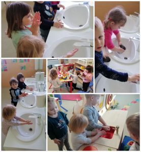 Obilježili smo i Dan vode, usvajali prihvatljive i pravilne načine održavanja higijene ruku stavljajući naglasak na važnost umjerenog korištenja vode, zatvaranja vode, a djeca su pojam “voda” povezala i s ostalom higijenom tijela koju provode u vrtiću ali i kod kuće, kao i s pojmom žeđi. Iz aktivnosti i razgovora provedenih na ovu temu, razvila se simbolička igra gdje djeca jedni druge potiču na komunikaciju, igru imaginacije i imitacije povezujući novousvojena znanja s postojećim iskustvima.