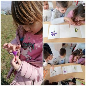 Ožujak. Mjesec kada se biljni i životinjski svijet polagano budi iz zimskog sna. Niču prvi vjesnici proljeća – visibabe, jaglaci i šafrani. Kako bismo iskusili buđenje prirode u potpunosti, mjesec smo započeli aktivnostima vezanim uz upoznavanje navedenih proljetnica. U šetnjama okolicom vrtića imali smo prilike vizualno i taktilno doživjeti jaglace, visibabe i šafrane. Kako bismo ih još bolje upoznali, navedene cvjetove smo sprešali i pomno promatrali u našoj sobi dnevnog boravka. Kasnije smo igrali igre poput osmišljavanja kratkih priča na temu proljetnica, razdvajanja riječi na slogove, recitirali kratke stihove, pjevali o maloj visibabi koju smo na kraju i izradili slikarskom tehnikom, rezanjem lijepljenjem kolaž papira.