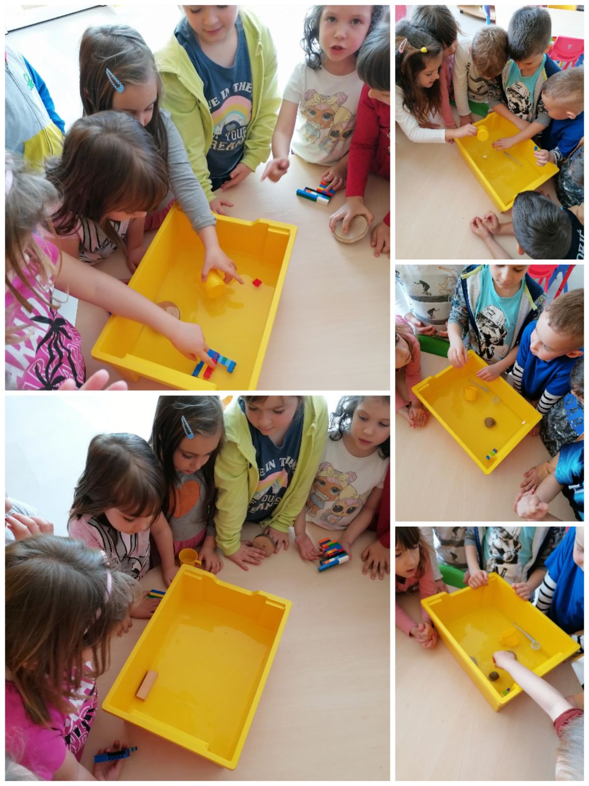 Dolaskom proljeća proširivali smo znanje o važnim karakteristikama tog godišnjeg doba. Na našem kalendaru pratili smo dane u tjednu, pa tako i promjenu godišnjeg doba. Uočavali smo da je trava zelenija, dani su duži, topliji i sunčaniji. Zazujale su prvi bumbari i pčelice, pojavili se leptiri, pojavio se poneki maslačak i tratinčica. Posebnu važnost pridodali smo vodi povodom obilježavanja Svjetskog dana vode. Otišli smo do potočića koji se nalazi u neposrednoj blizini našeg vrtića. Osluškivali smo kako žubori, uočavali smo i donosili zaključke o tome da li je potok čist, bistar, ima li u njemu riba. Uzimali smo uzorak (kapljice) potoka kako bismo ga promatrali pod mikroskopom, što je djecu posebno zainteresiralo. Isto tako, ponovili smo u kojim se sve oblicima voda može naći, te smo istraživali što u vodi pliva, a što tone.