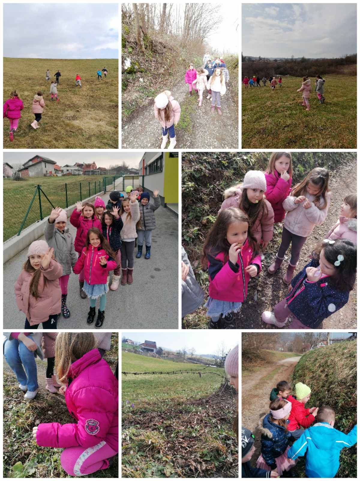 Ožujak. Mjesec kada se biljni i životinjski svijet polagano budi iz zimskog sna. Niču prvi vjesnici proljeća – visibabe, jaglaci i šafrani. Kako bismo iskusili buđenje prirode u potpunosti, mjesec smo započeli aktivnostima vezanim uz upoznavanje navedenih proljetnica. U šetnjama okolicom vrtića imali smo prilike vizualno i taktilno doživjeti jaglace, visibabe i šafrane. Kako bismo ih još bolje upoznali, navedene cvjetove smo sprešali i pomno promatrali u našoj sobi dnevnog boravka. Kasnije smo igrali igre poput osmišljavanja kratkih priča na temu proljetnica, razdvajanja riječi na slogove, recitirali kratke stihove, pjevali o maloj visibabi koju smo na kraju i izradili slikarskom tehnikom, rezanjem lijepljenjem kolaž papira.