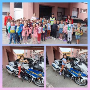 Djeci je najzanimljiviji bio motor, a pružena im je mogućnost i nakratko sjesti te vidjeti koliko je u biti motor veliki i težak i da s njime zasigurno nije lako upravljati. Kod neke djece potaknulo je želju za time da kada odrastu požele biti policajci. Nakon edukacije o prometnom odgoju, gđa. Sunčica povela nas je do Gradskog kazališta Zorin dom Karlovac, a putem smo pratili prometne znakove i obilježenu biciklističku i pješačku stazu. Sigurno i u uz njezinu pratnju prešli smo preko zebre te se s njome oprostili i zahvalili se na svemu.