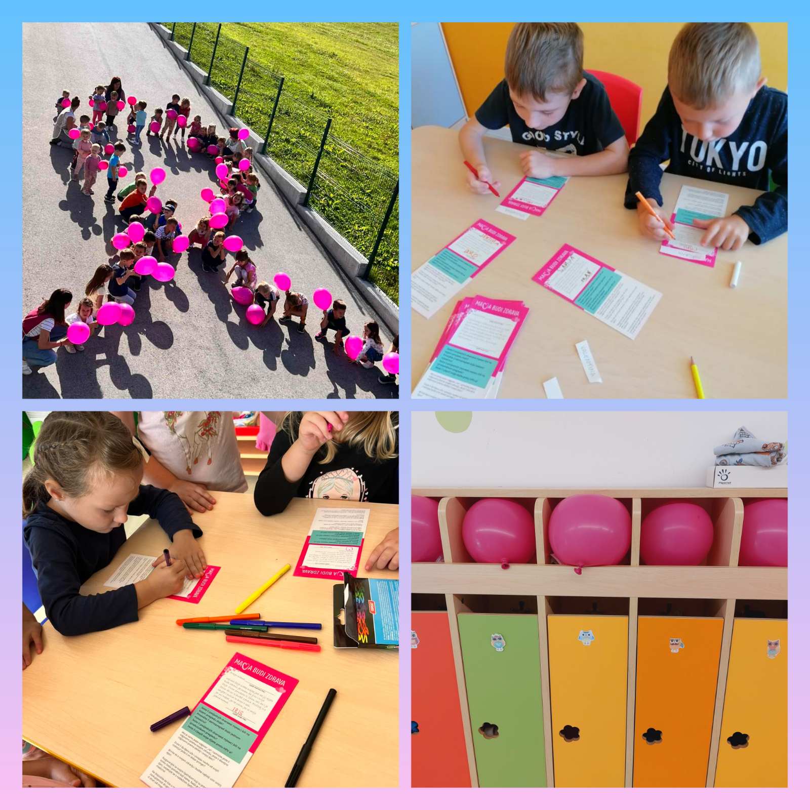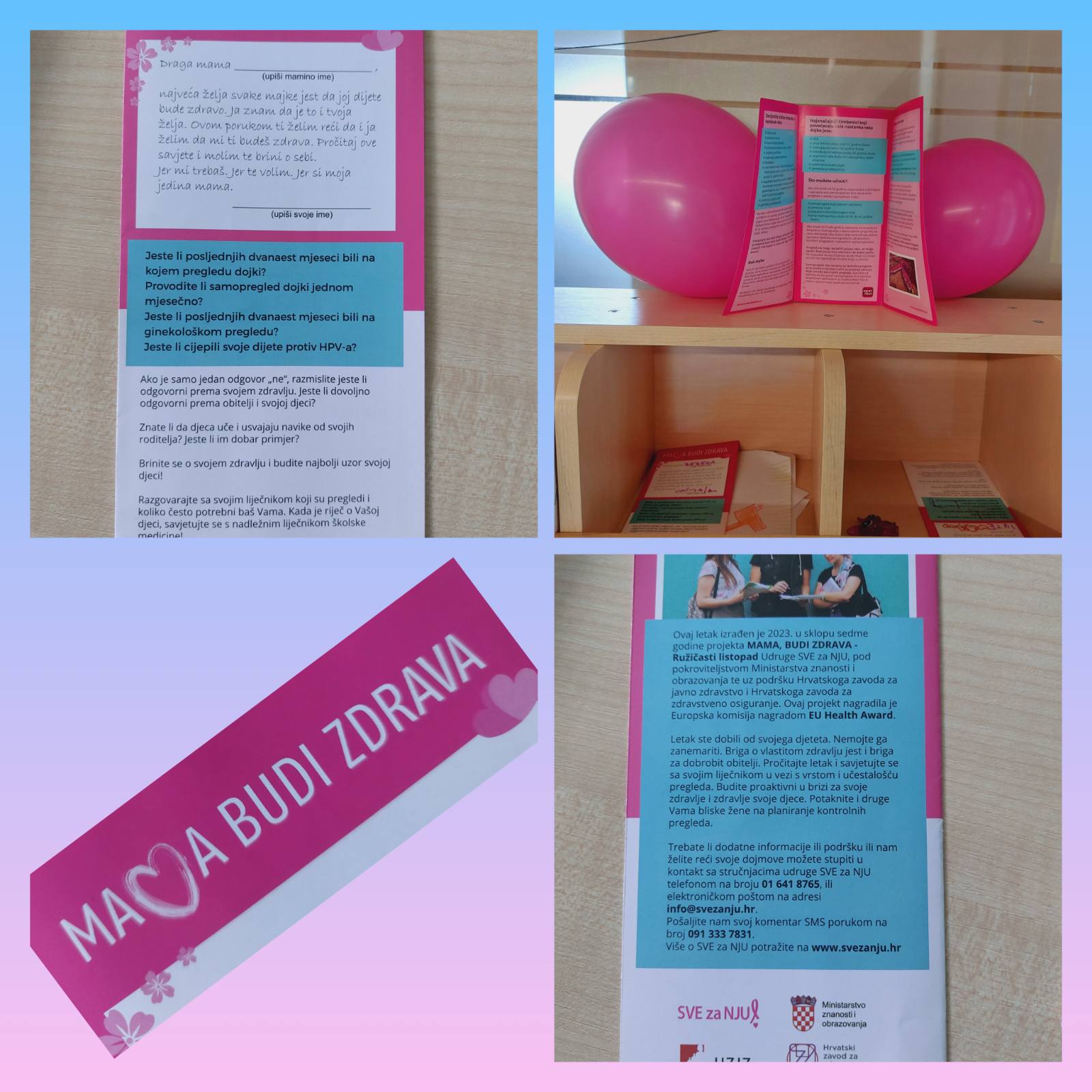 Povodom Međunarodnog mjeseca borbe protiv raka dojke djeca školske i predškolske dobi širom Hrvatske i ove će godine poručiti: „Mama, budi zdrava“. Da joj dijete bude zdravo, najveća je želja svake majke još prije rođenja djeteta, a sad to djeca poručuju njima. Briga za vlastito zdravlje predstavlja odgovornost ne samo prema sebi nego i prema djeci. Letak iz dječje ruke majka neće odbaciti nego pogledati i vjerujemo razmisliti kad bi trebala otići na pregled.