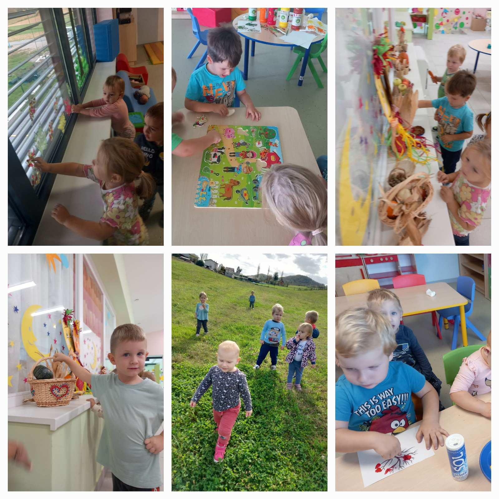 Ljepote jeseni, plodove, čaroliju boja, vremenske promjene počeli smo primjećivati te skretati pažnju na iste. Kroz suradnju s roditeljima, umjetničko izražavanje i stvaranje, razne slikovne aplikacije, pjesmice, priče igre s pjevanjem te neposrednim “dodirom” u prirodi, proširili smo spoznaju ovog godišnjeg doba.