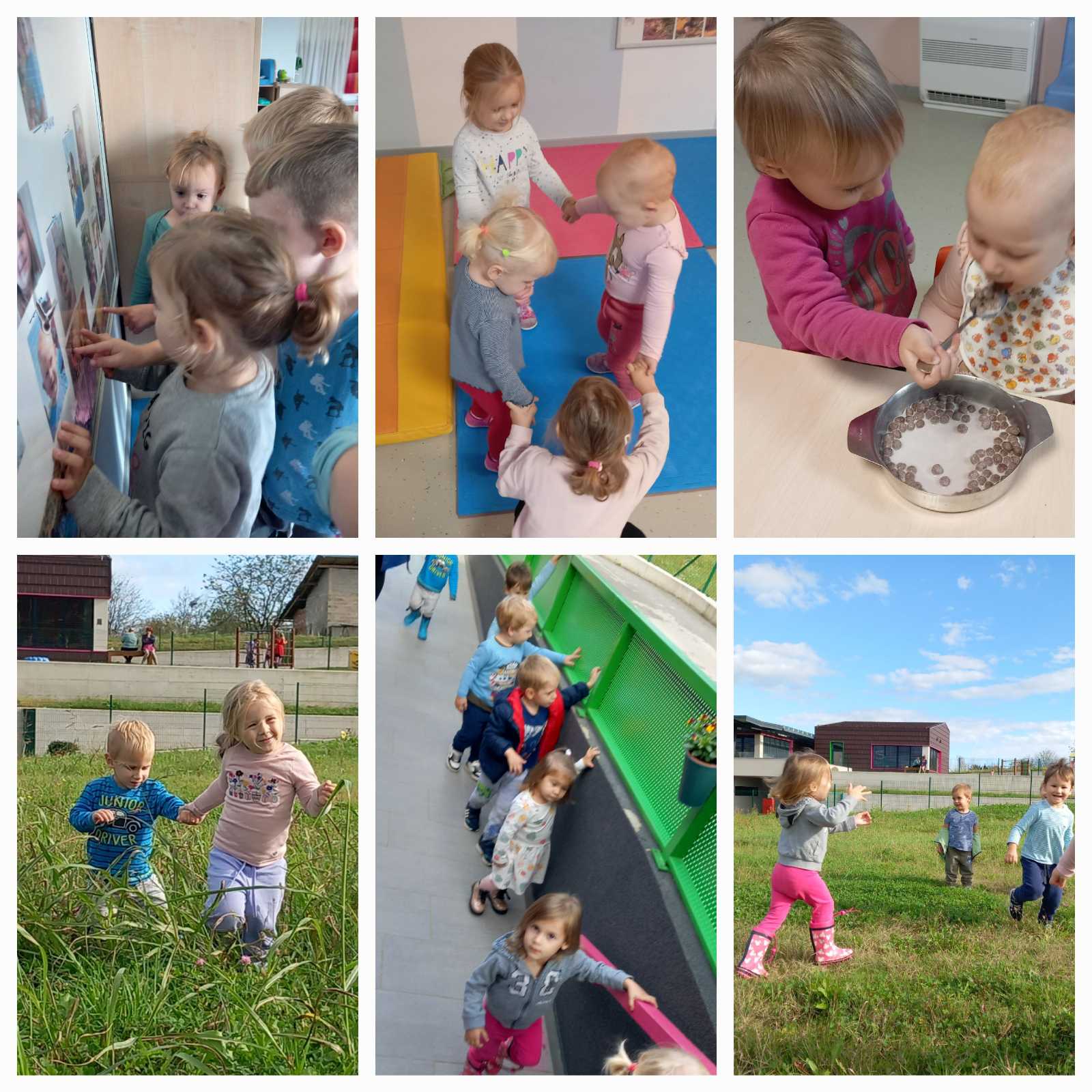 Početkom mjeseca obilježava se Dječji tjedan, čiji je cilj usmjeriti pozornost prema ostvarivanju prava, potreba i aktivnosti s djecom i za djecu sa sloganom “ljubav djeci prije svega”. Mi smo na razini ustanove kroz dogovore i pomno osmišljavanje, realizirali aktivnosti od djece za djecu i od odgojitelja za djecu. Aktivnosti su uspješno provedene kroz zabavu te zadovoljavanje potreba i interesa svakog djeteta kao individue, ali i jačanje suradnje i partnerskih odnosa djece u skupini i s drugim skupinama. Aktivnosti su: dječja prava od djece za djecu gdje smo surađivali sa skupinama “Perlice” u održavanju higijene, međusobno u skupini smo surađivali u uzimanju obroka te zadovoljavanju ostalih fizioloških potreba. Slikovnicu “miš i lav” ispričala (“pročitala”) su djeca iz skupine “Puzzlići” te nas poticala na sudjelovanje u različitim aspektima: na promišljanje, iznošenje mišljenja, verbaliziranje, prepoznavanje, opisivanje… Sve su skupine sudjelovale u izradi naše prve vrtićke zastave kao i u osmišljavanju slogana. Odgojiteljice su za djecu pripremile igrokaz “tri praščića”, a najveća atrakcija u igrokazu je bio, naravno, vuk. Za kraj tjedna međusobna podrška i poticaj bili su djeca jedni drugima u sportskim i društvenim igrama.