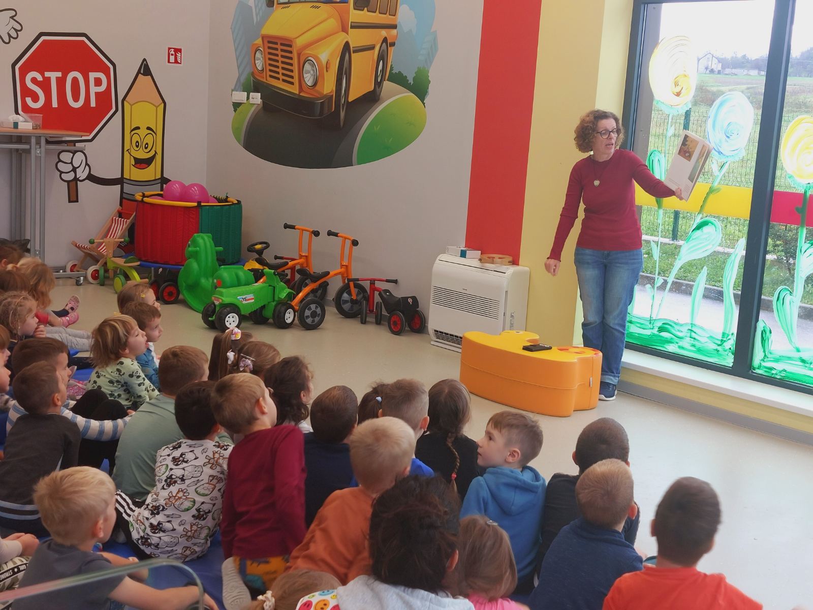 U sklopu Mjeseca hrvatske knjige posjetio nas je i bibliobus, s djelatnicima Nikolom i Natašom, a Nataša nam je pročitala prekrasnu priču Bila jednom…