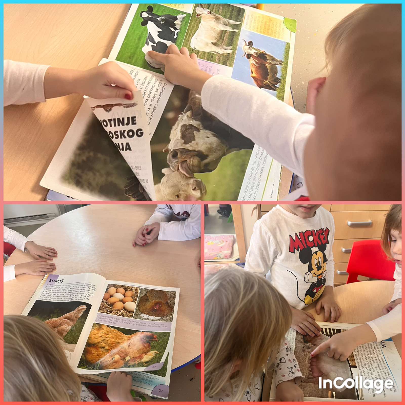 Vrijeme nam prolazi podosta brzo pa smo se već našli u mjesecu studenom. Mjesec nam je obilježio rad na našem malom projektu „Moje seosko gospodarstvo“ pa smo većinu vremena proveli u aktivnostima o domaćim životinjama. Veliki interes za aktivnosti proizašao je iz knjige „Upoznajmo seosko imanje“ koju su skoro svakodnevno proučavali, postavljali pitanja o životinjama koje se tamo nalaze međusobno ulazili u razgovore te tražili odgovore kod odgojitelja.