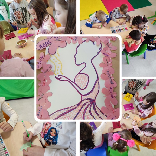 Obilježavajući Međunarodni dan žena, odlučili smo posvetiti vrijeme kreativnim aktivnostima s djecom koje su imale za cilj potaknuti razmišljanje o ženskim ulogama i zanimanjima. Tijekom radionice, djeca su izrađivala čestitke koje su kasnije poklanjali ženama u svojoj okolini, razgovarali smo o različitim zanimanjima te ih potaknuli da razmišljaju o ženskim varijantama tradicionalnih zanimanja poput drvosječe, vatrogasca i slično. Nakon radionice, djeca su oduševljeno podijelila čestitke s mamama, tetama, ali i drugim ženama koje su im važne u životu, poput doktorica, zubarica, blagajnica i policajki. Također, izrađivali smo i plakat na temu „Žene su…“. Nadopunjavali smo ga sa epitetima koje su djeca ponudila kao odgovor na pitanje kakve žene mogu biti.