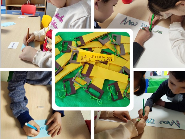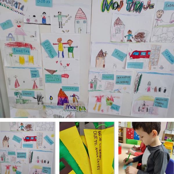 Osim toga, obilježili smo i Dan očeva 19. ožujka kroz kreativne aktivnosti koje su djeca provodila. Prvotno su djeca flomasterima pisala poruku „Baš je lijepo biti dijete moga tate!“. Izrađivali smo čestitke u obliku pile te pripremili prigodan plakat s dječjim crtežima i pridjevima koji opisuju njihove očeve. Kroz ovu aktivnost, djeca su imala priliku izraziti svoju zahvalnost i ljubav prema svojim očevima na kreativan način. Naučili smo i prigodnu recitaciju „Moj tata“.