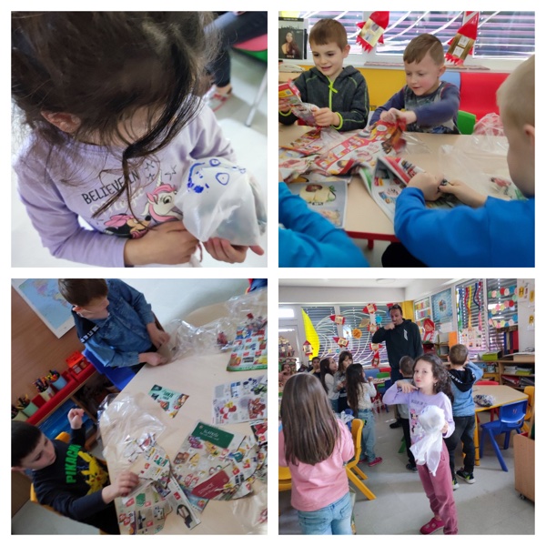 Tijekom ovog mjeseca organizirali smo uskrsnu radionicu za roditelje i djecu kako bismo zajedno proslavili blagdan Uskrsa. Pripreme su počele već prethodnog tjedna kada su djeca izrađivala, bojala i rezala materijal potreban za radionicu. U veselom i razigranom ozračju, zajedno smo se družili i radili, a tijekom radionice roditelji su se pridružili svojoj djeci u izradi uskršnjih posudica. Koristeći kolaž i papirnate tanjuriće, zajedno smo oblikovali posudice u obliku zečeva za pisanice, tuljce za piliće te kolaž papir za koke. Djeca su pokazala svoju kreativnost i vještine izrade, dok su roditelji uživali u zajedničkom stvaranju s njima. Na kraju radionice, djeca su ponosno odnijela svoje kreacije kući, zajedno s jajima koje su ukrašavali temperama u vrtiću. Ova radionica bila je prilika za obiteljsko druženje i stvaranje uspomena te za zajedničko oblikovanje i ukrašavanje predmeta koji će krasiti domove tijekom blagdana Uskrsa.