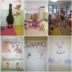 Vježbanje se nastavilo kroz tjedan. Svako jutro u centru je bio drugi voditelj i izvodile su se vježbe prema slikama, djeca su davala uputstva jedan drugome.