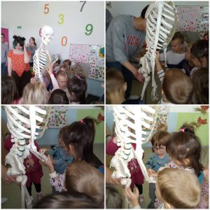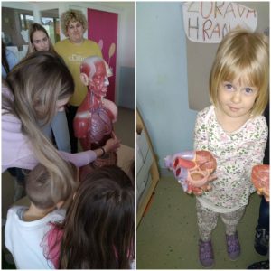 Posjetili su nas i učenici Medicinske škole iz Karlovca. Donijeli su kostur koji su sva djeca doticala i ispitivala. Tu se našla i lutka Đuro sa svojim organima, mišićima i krvožilnim sustavom. Djeca su mu vadila organe, opipavala ih i proučavala. Nakon veselog i edukativnog druženja ispratili smo goste riječima: Dođite nam opet.