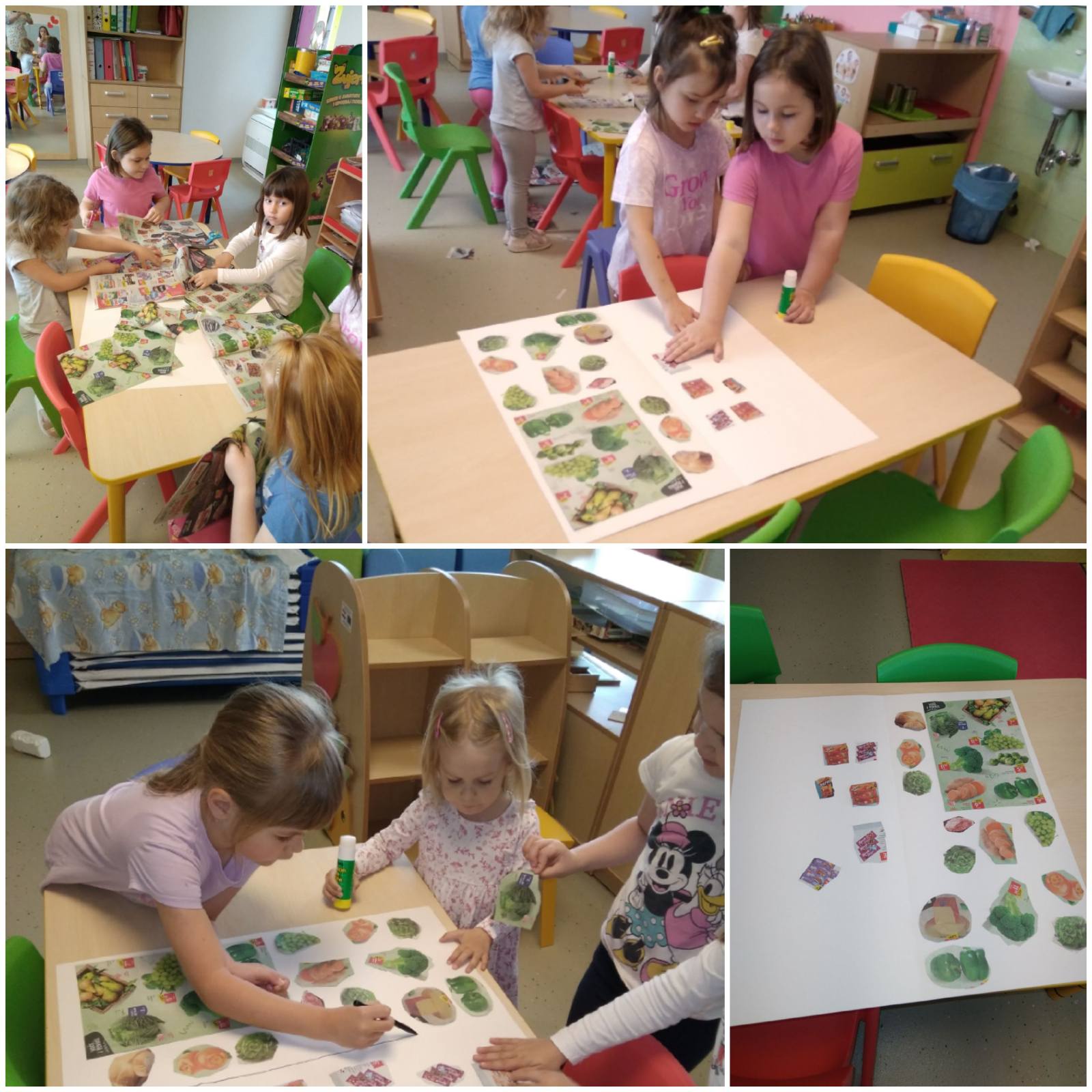 Za slijedeću aktivnost kroz tjedan pripremili smo škarice, ljepila, veliki karton te puno novinskog papira iz kojeg smo izrezivali slike hrane.
