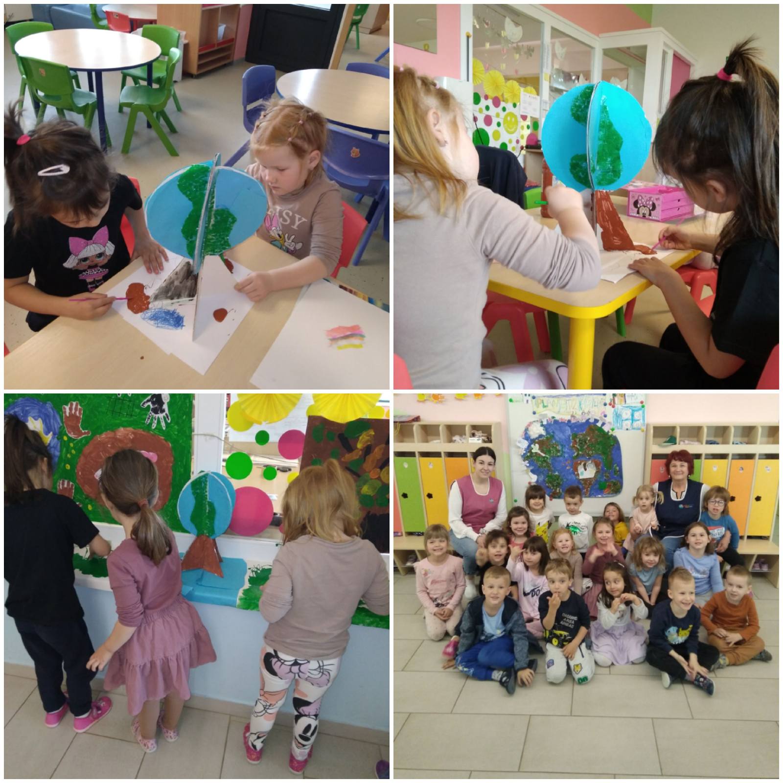 Dan planeta Zemlje obilježili smo 22. travnja. Izradili smo plakat sa našim likovnim radovima te maketu globusa.