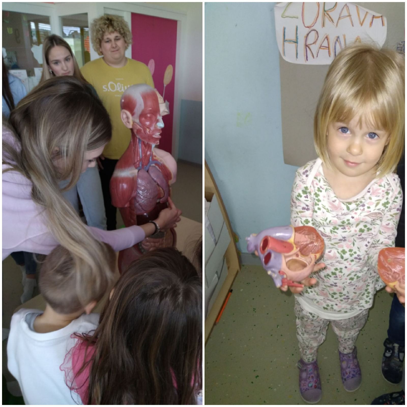 Posjetili su nas i učenici Medicinske škole iz Karlovca. Donijeli su kostur koji su sva djeca doticala i ispitivala. Tu se našla i lutka Đuro sa svojim organima, mišićima i krvožilnim sustavom. Djeca su mu vadila organe, opipavala ih i proučavala. Nakon veselog i edukativnog druženja ispratili smo goste riječima: Dođite nam opet.