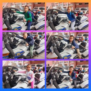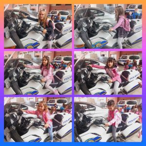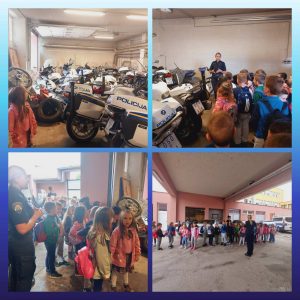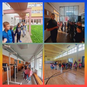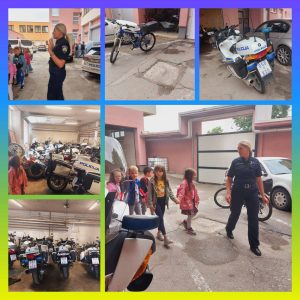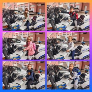 U dvorani nam je pokazala gdje službenici vježbaju kako bi ostali u kondiciji te nam je prezentirala neke od predmeta koje koriste policijski službenici, a djeca su ih mogla promatrati i isprobati. Nakon obilaska unutarnjeg dijela postaje, otišli smo do vanjskog dijela gdje se nalazi vozni park i garaža.