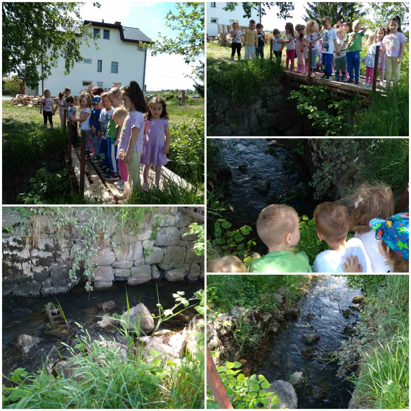U blizini našeg vrtića teče potočić, po kojem je naš vrtić i dobio ime. U sklopu aktivnosti za boravak na otvorenom šetali smo do potočića i promatrali promjene na livadi. „Narasla je trava i ima puno šarenoga cvijeća“ – uočavala su djeca. „Kako je voda čista“. U potoku smo opazili i male zelene žabice, pažljivo hodali preko drvenog mostića.