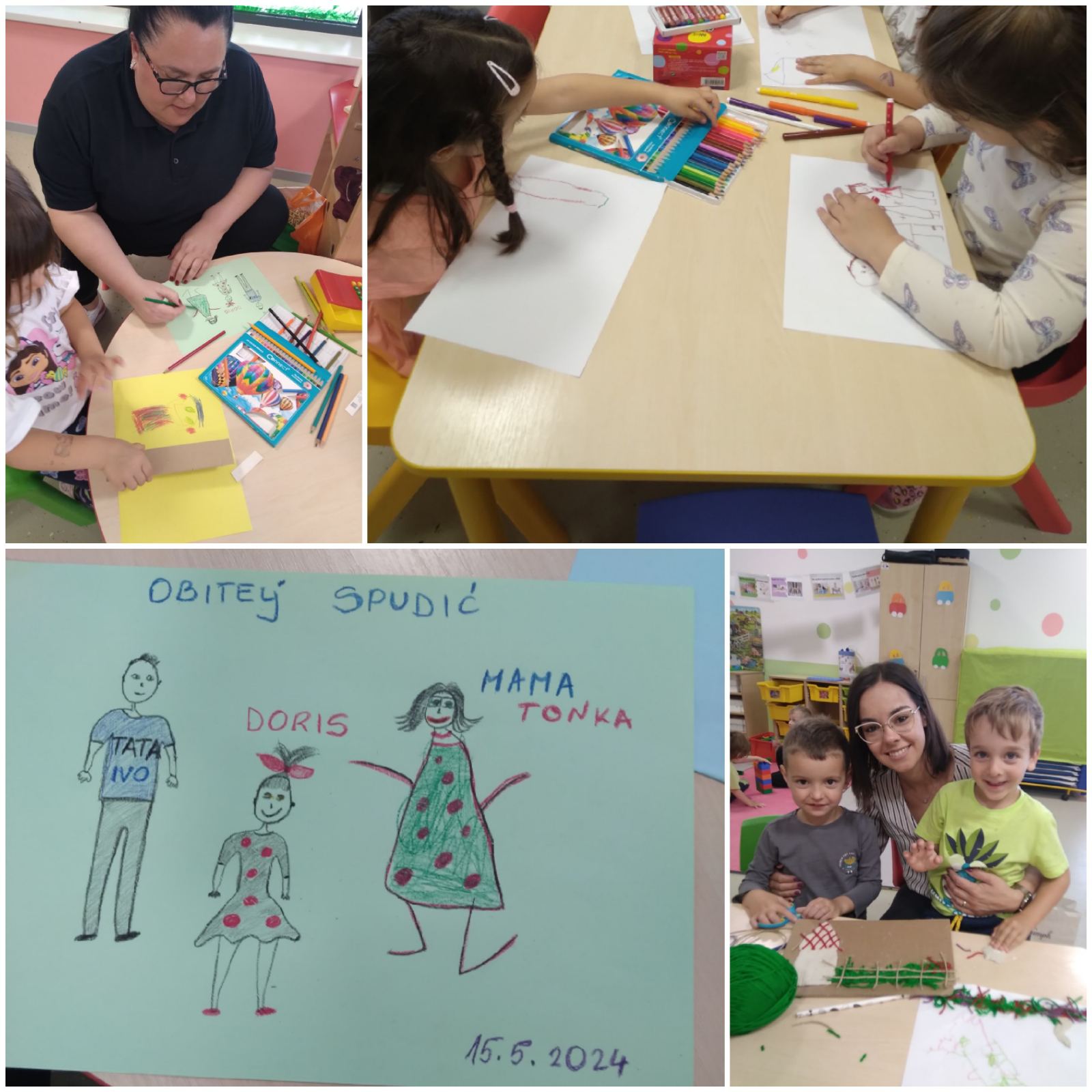 Međunarodni Dan obitelji u našem vrtiću obilježili smo uz veselu radionicu sa članovima uže i šire obitelji. Uz pomoć roditelja pripremili smo puno prirodnog i neoblikovanog materijala te proveli ugodno druženje sa članovima obitelji što pokazuju i zajednički likovni radovi.