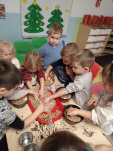 Izradili smo božićne i novogodišnje čestitke u tehnici tempere te boriće od češera koje smo obojali bijelom temperom i ukrasili kuglicama od aluminijske folije, šljokicama i gliterima. Radovima smo iznenadili roditelje na božićnoj priredbi. Djeca su, zajedno s roditeljima i odgojiteljima, vješto izrađivala i ukrase na božićnoj radionici održanoj 10. prosinca. Naši su Perlići cijeli mjesec bili vrijedni i zagrijavali svoje glasnice svakodnevnim uvježbavanjem programa povodom božićne priredbe koja je održana 17. prosinca 2024. godine uz podjelu dječjih radova uz tople želje za blagoslovljene i sretne blagdane.