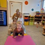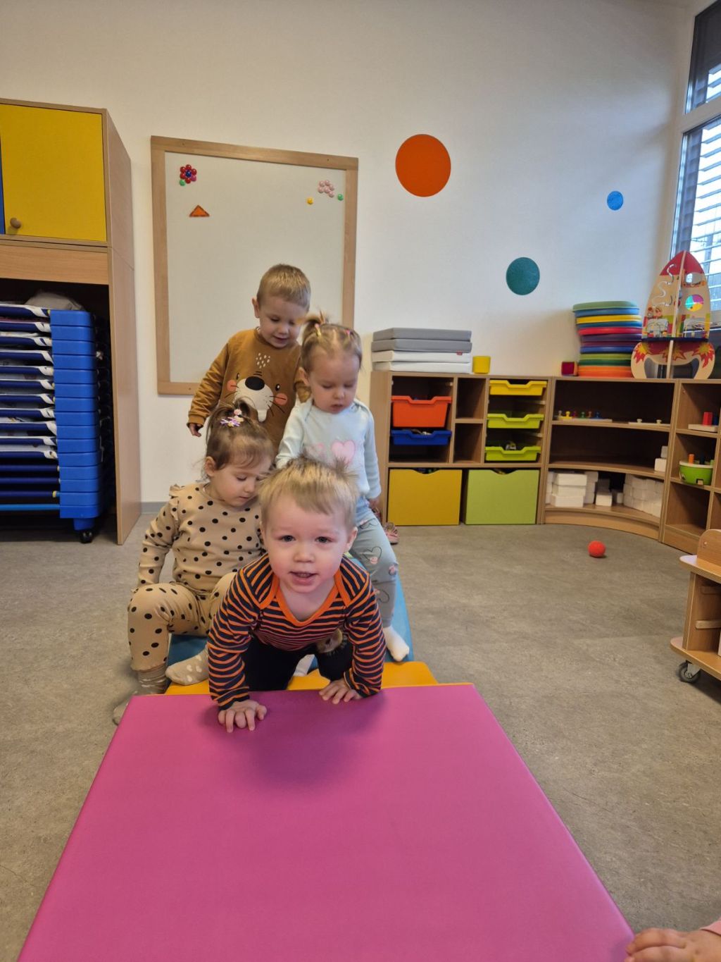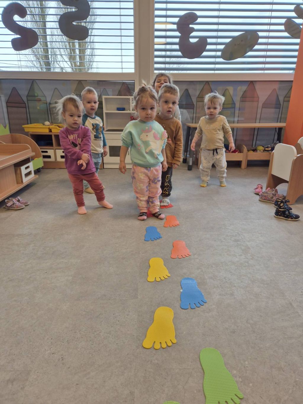 Svaki dan provodimo i tjelesne aktivnosti uz demonstraciju odgojiteljica. Vježbamo podižući ruke i noge te poskakujući. Time postajemo svjesni svojih mogućnosti i napredujemo motorički.