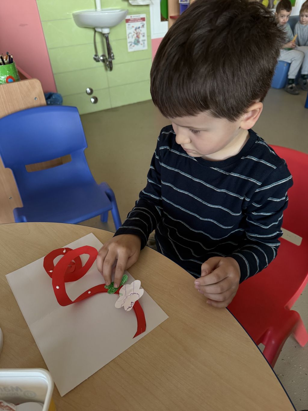 U prvom tjednu ožujka obilježava se i Međunarodni dan žena. Izrađivali smo čestitke koje su se otvarale i iz njih su izlazili cvjetići te je na prednjoj strani ukrašen oblik žene.