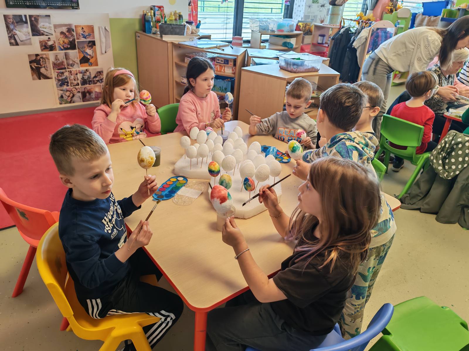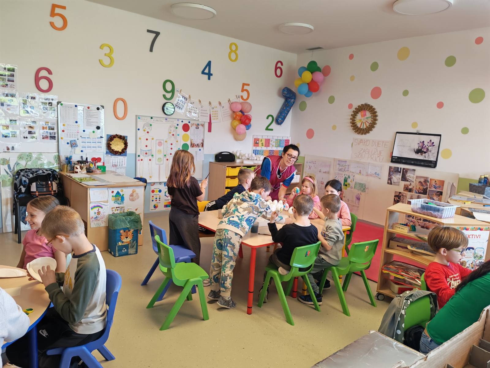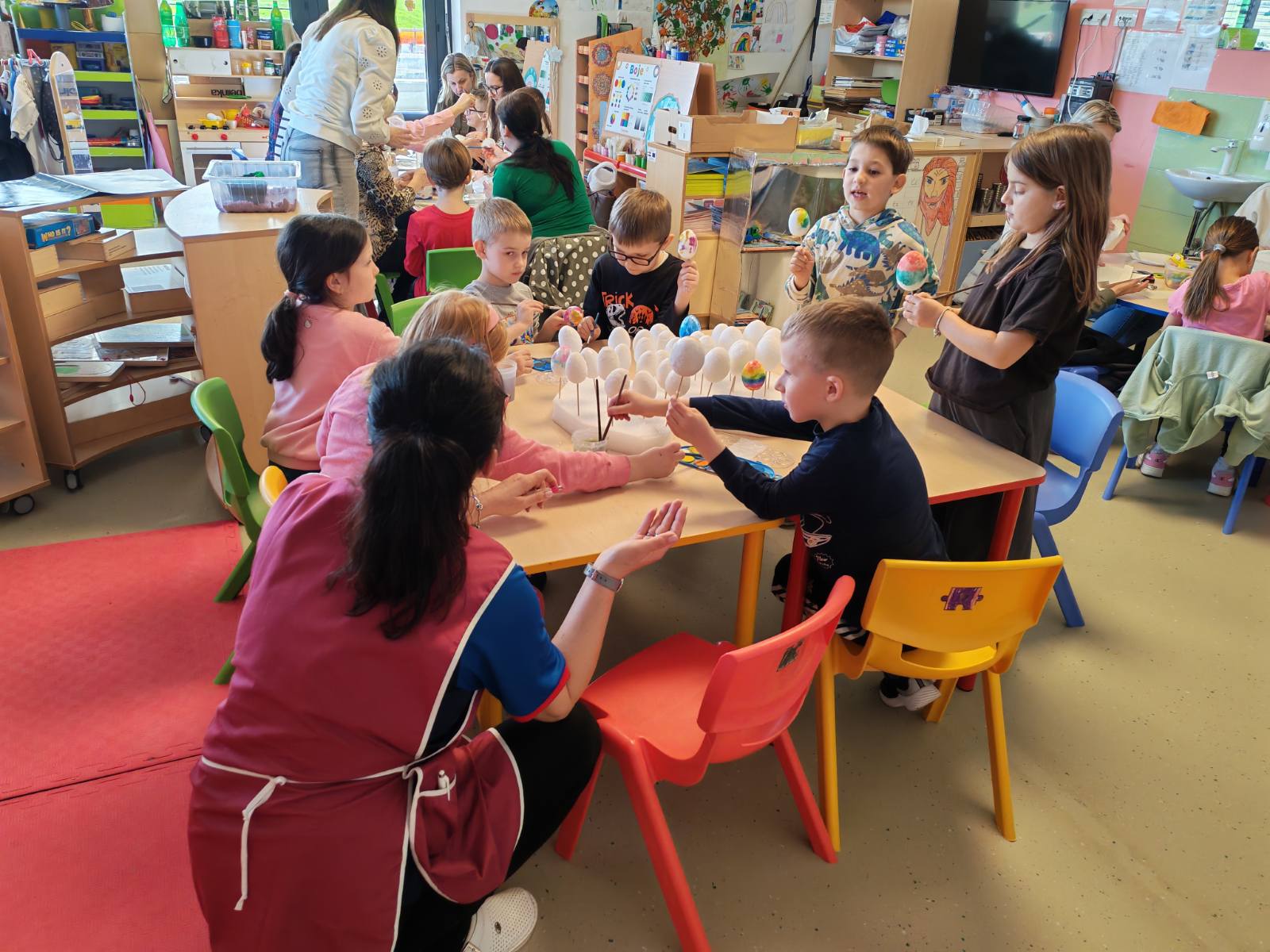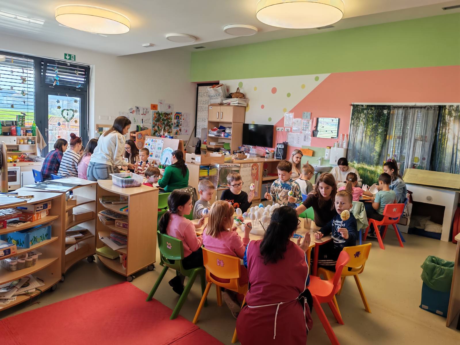 Kroz zajedničko druženje, mališani su uz pomoć svojih roditelja izrađivali razne uskrsne ukrase, bojali pisanice i sudjelovali u kreativnim aktivnostima koje potiču maštu, spretnost i zajedništvo. Poseban naglasak stavljen je na suradnju roditelja i djece, čime se dodatno jačaju međusobni odnosi i osjećaj pripadnosti skupini.